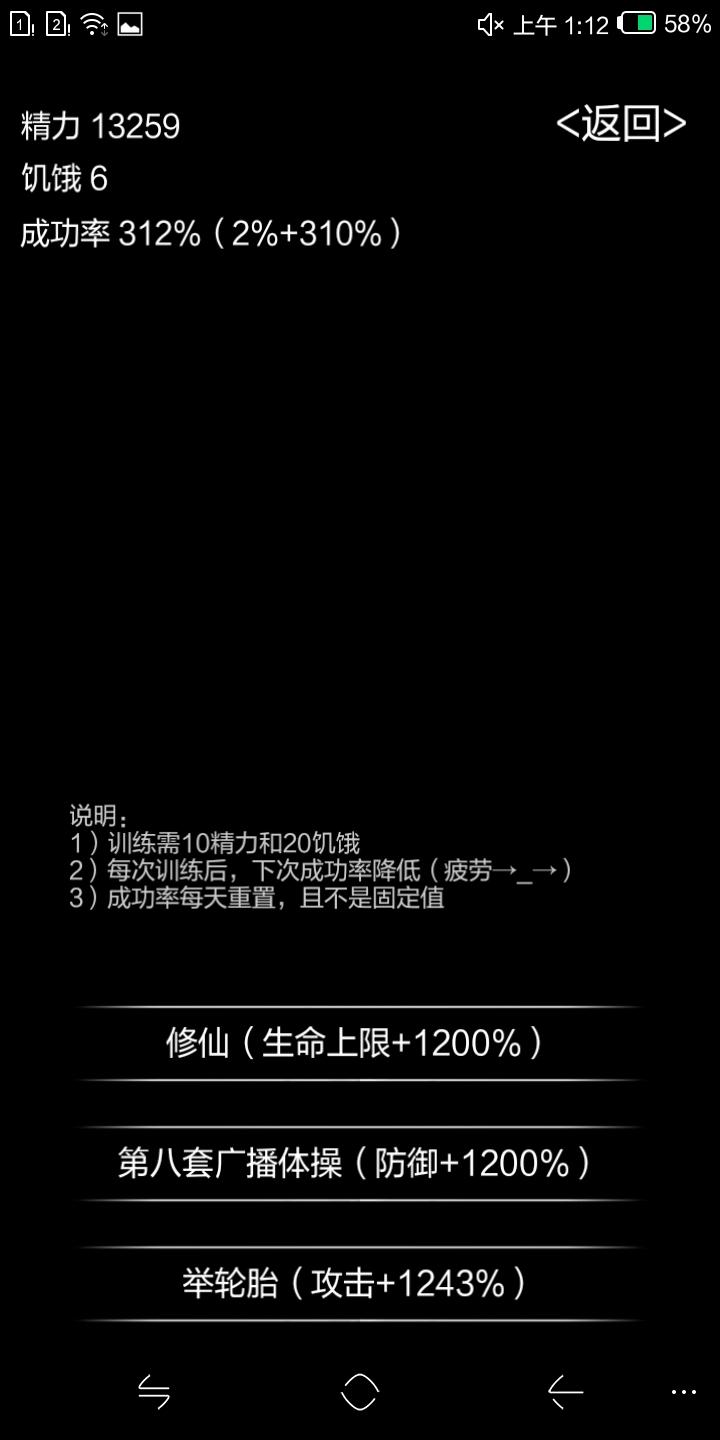 攻略汇总伤害公式:伤害=攻击(基础攻击×黑刀倍率×攻击模式倍率×枪倍率)-防御ps.修罗模式中普通怪属性基础攻击、防御、血量每天等量递增4块开局:100米~299米死亡,选择不复活、不接受,2次后第二个选项会跳到4块。新手区(1-99米):第三天女贼必刷,第七天精英蛇看属性。必刷的怪:蚊子、蚊媛、兔子;蛇:23攻0防200血 攻没40不推荐刷;精英蛇:11毒每回合叠加0防315血 前