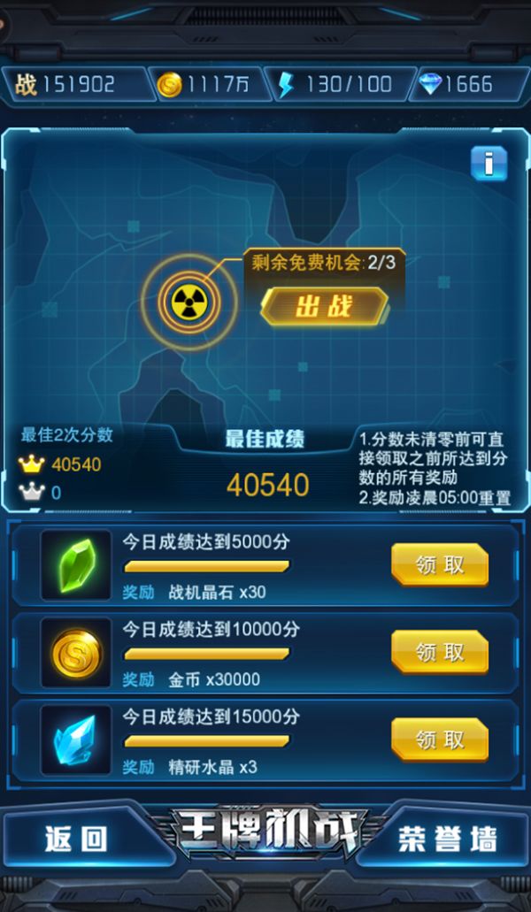 《王牌机战》巅峰对决模式是自测试以来就存在的“古老玩法”。在巅峰对决模式中,指挥官们将指挥自己的战机与BOSS们进行直接的正面对决,1V1BATTLE!每次在巅峰对决中的出战都会产生对决分数。击杀的BOSS个数越多,能够得到的分数也就越高。达到不同的分数段还可以获得不同的奖励,包括金币、战机晶石、科技结晶、经验卡等等升级战机所需要的大量消耗品。所有的奖励,凌晨5:00都会进行重置。在分数未清零
