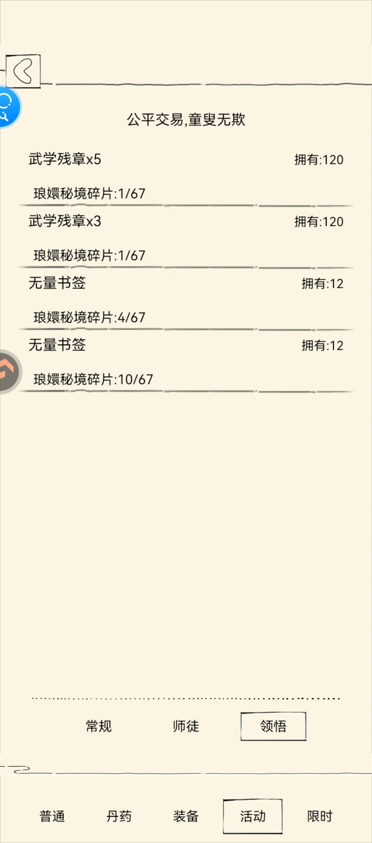 平安镇客栈→偶货商→活动→领悟。 有人问小编怎么这么多碎片?悄悄告诉你,换的!什么?哪里换的?令牌→重复绝学钥匙→碎片!