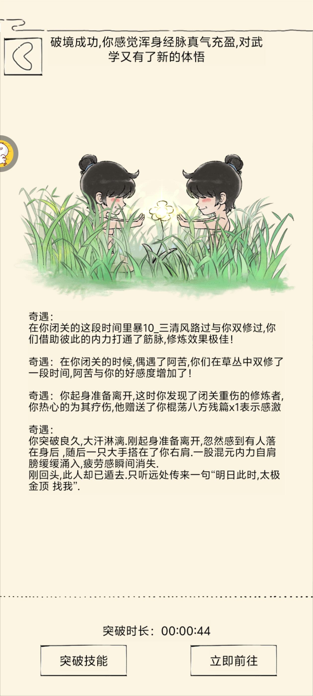 必带口诀: 四两千斤:化解攻击,反击对手 选带口诀: 阴阳化生:强化阴阳诀 大象无形:提高反击伤害 气沉丹田:增加挤字诀成功几率 武学简介:一门拥有暴走最逆天机制的武学,是一门有概率越极大境界反杀敌人的存在,越级能力比九剑还强,只不过这个机制的触发条件比较苛刻,较为极端。鉴于太极拳十分冷门,技能又十分繁琐,很多人都不知道太极拳的技能机制究竟是什么,在这里简单讲一下: 挤字诀:造成极少量的伤害,并进