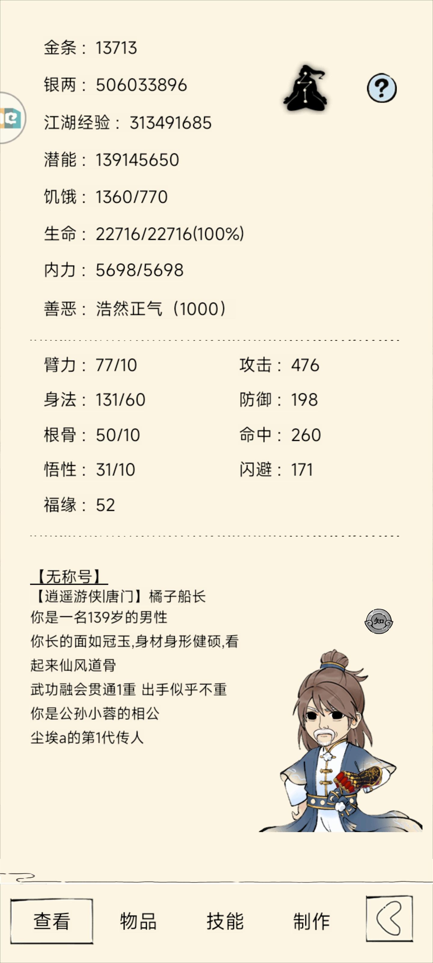 太黑经:获取方法,洗武器洗150次不出破防,触发非洲酋长剧情,帮助非洲酋长用木棍打败剧情中的欧皇可以获得(简称欧吃矛),绝招:非酋召唤之术,召唤一个非洲朋友帮你对战,属性随着太黑经内功等级提升