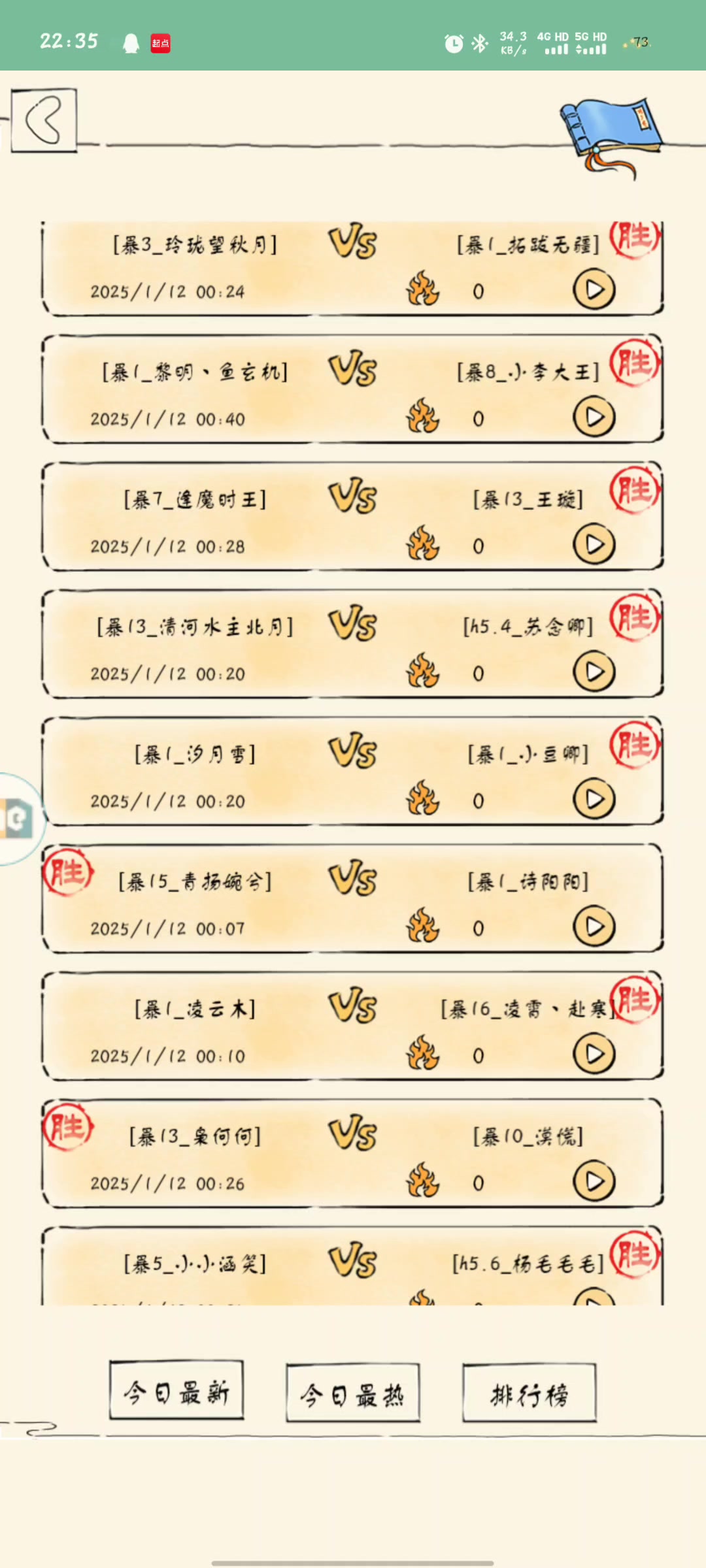 对战千蛛百毒① 败 对战千蛛百毒② 败 对战血魔十象第一次 胜 对战血魔十象第二次 败 对战九太 胜 对战黯然九四 败 对战三刀蛤蟆 败 对战3.3血流白 败 对战3w血三境如洗 败 对战素太 胜