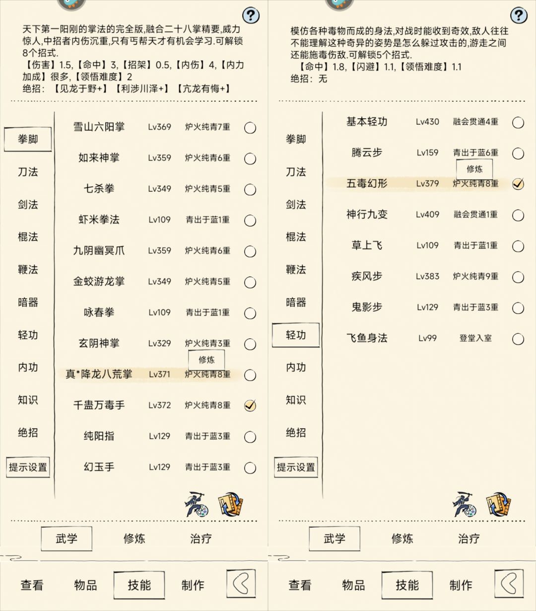 各练度武学梯度排行