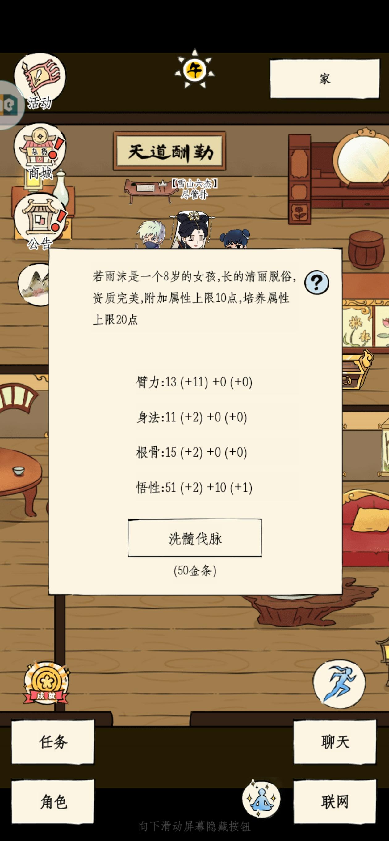 看到好多大佬身法+14,一直都是遥不可及,不敢去想,总觉得满破满系满防御就行了。 然后晓枫送了几(hen)根(duo)金条。不知道怎么就脑抽的洗了一下拳头(花了大概1000多金条) 然后金条就被我败光了。出了身法2是我万万没想到的,正好想着弃刀转拳了。真是不当家不知柴米油盐贵,上辈子玩拳,看好多臂力刀好牛,于是跟着转了,但是我忽略了一件事,我是臂力3刀,人家是臂力霸十(不是武学问题,是我个人菜) 我