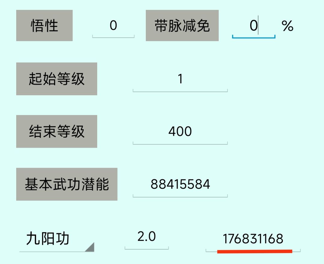 由于四轮内功保留新机制,官方近期增加了内功的绝招获取途径,这也就衍生出一些新的玩法,本帖可以帮助大家节省一些潜能。 首先说明,123轮的时候,轮回不勾选的内功按照0悟性带脉从1级升级到当前等级所需潜能,再除2返还到舍利子。 如下图所示,九阳神功1级升级到400级,不勾选会返还红线部分除2,得到8841万潜能计入舍利子。 A玩家300级读书25%的带脉减免,并且在本轮洗过50基础悟性,轮回之前悟性加