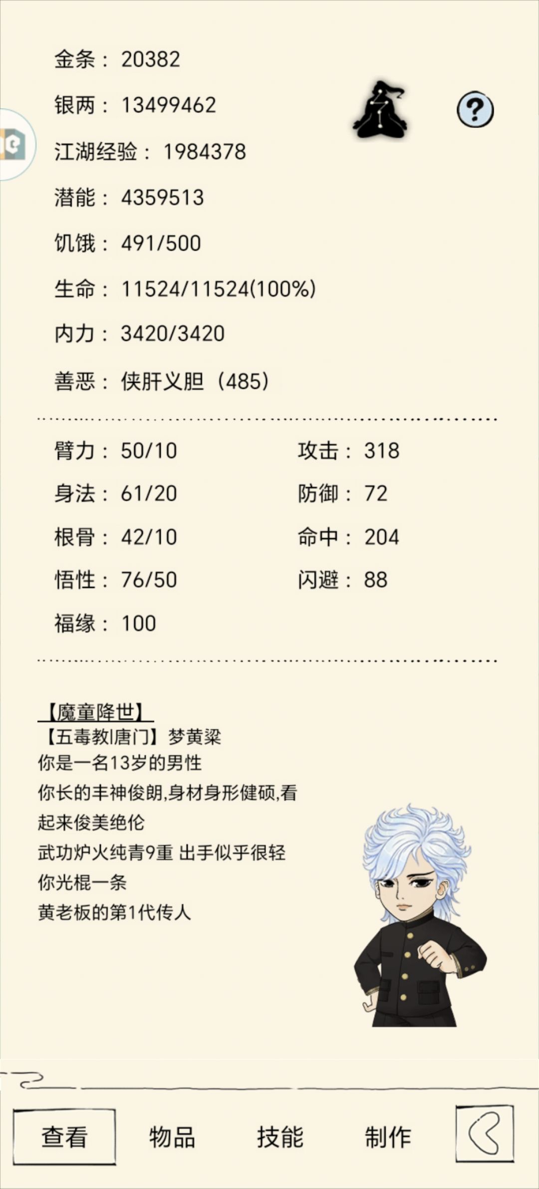 ps:那么也就是说,如果我们未轮时属性是90总和,轮完之后就不会低于90,未轮时属性是100,轮回完之后属性就不会低于一百,那么我们要怎么样才能有100或者更多的属性呢? 这就要说到我们的第二种属性。 第二种:附加属性(培养) 什么是附加属性呢?也就是除了我们先天点的属性外其他方式获得的属性,首先来说获得方式。 1.培养属性点 我们在生下孩子(包括怀孕期间,取名前)之后的最高武学以及玩家伴侣的武学