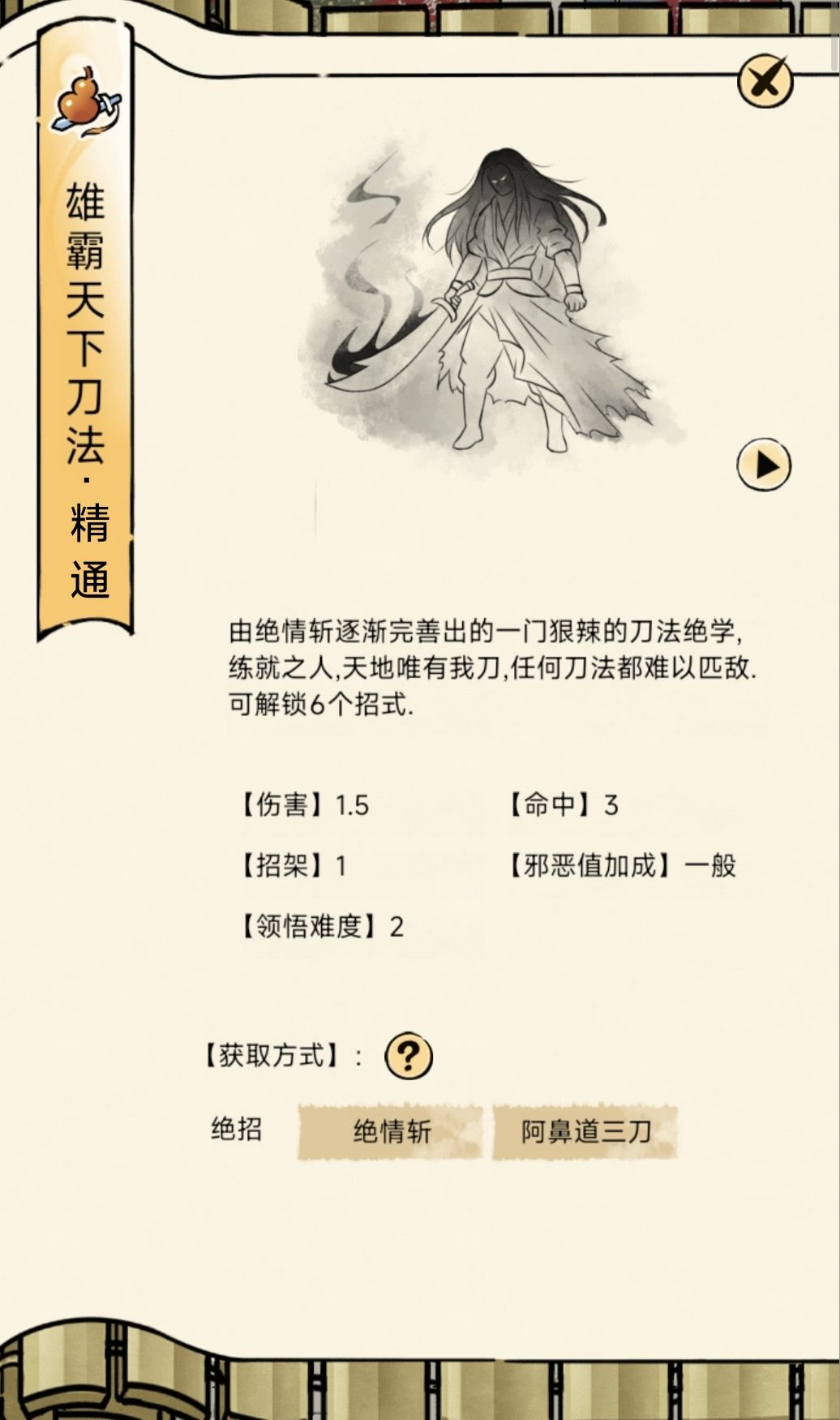 此帖为个人收集各大平台,大佬口中的霸刀内容,小号马上1轮而写了一封帖子,省的自己翻相册,也给刚玩拿到霸刀的萌新看看有没有用,霸刀大佬看到如有错点,还请指教改正[表情_致敬] 富玩拳,穷玩刀,血魔拿到霸刀直接拿下[表情_斜眼笑] 血刀门派拿到血魔,福地碎片能拿到霸刀就拿, 霸刀 6111加点,善恶度加成,-1000,霸刀是直伤武学,霸刀等级优先,然后才考虑10像 霸刀伤害来源在霸刀等级,臂力,10