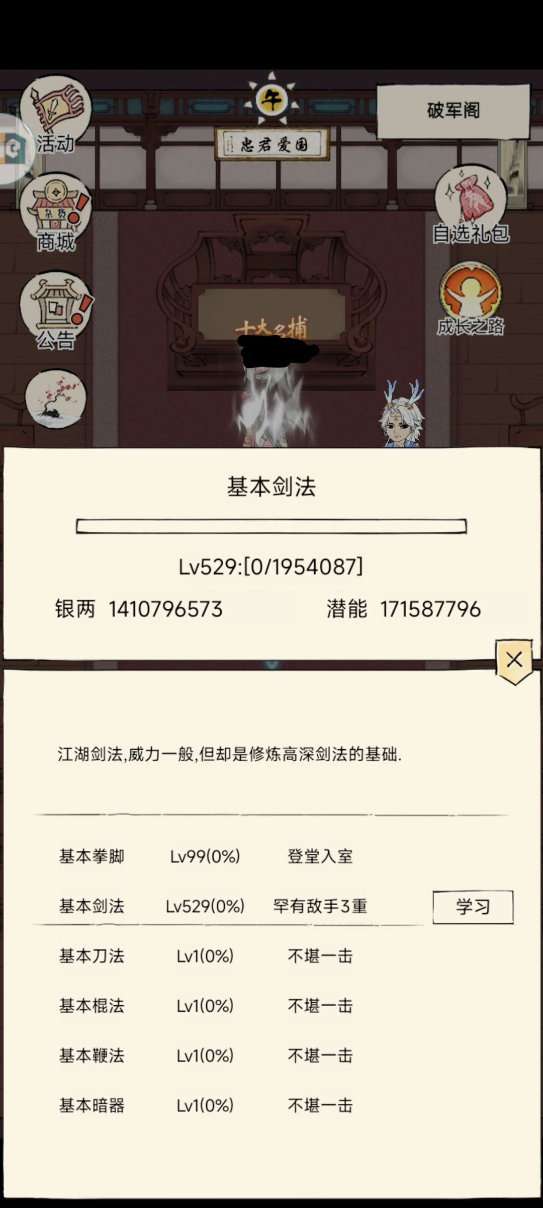 1 玩身法拳 2 玩根骨拳或悟性剑