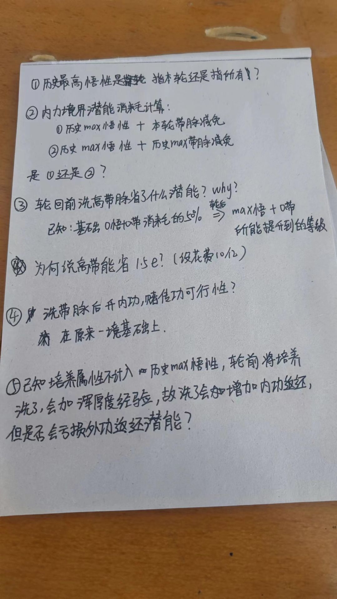 [表情_微笑]如果大家问问题都这么详细就好了 ①本轮,且受培养+本轮血脉影响 ②选1,本轮最高悟性带脉 ③省了升级基础的潜能,具体操作如下: 不洗带脉前,先升级基础300~400级,趟床,然后趟满了就武学转化。 轮回前洗带脉,补基础即可。 5个基础+基础内500级以上,肯定能省下1.5e ④可行,基础等级传功也会算入轮回潜能返还,潜能返还是按等级+最高带脉悟性计算的,不是按照消耗潜能计算。 大号已