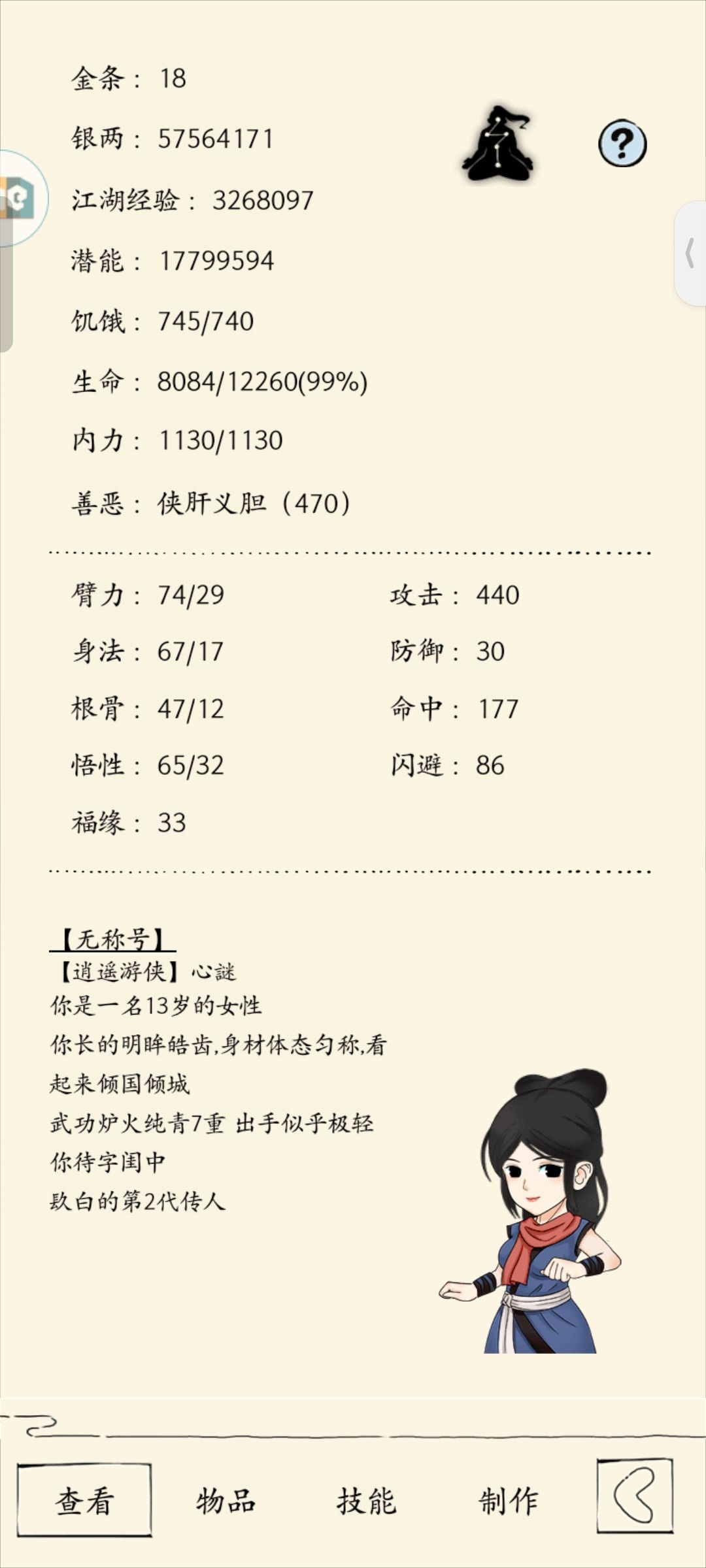 这是一篇来自未轮萌新的轮回纪念帖 一世去了玉女 轮回未出师 带走了飞碟舞步和玉女剑法 未轮目标 1.凑够真元 ✓ 68440 2.福地70 ✓ (感谢官一梦琪佬) 3.潜能3kw × 4.孩子满属性 1006 ✓ 5.太白 × (真的很想要太白啊😭) 6.92和九爪 × 7.93 ✓ 第一世部分游戏心得(呸 不是心得 是对于萌新的一些游戏小技巧): 1.对于第一世的伴侣 建议可以先随便娶 然后灌