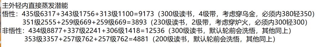 当前版本 一定是速轮 三轮前都速轮 收益最大 潜能损耗最小的 我列举的真元图 只做一轮二轮三轮的悟性流参考 在选择一轮的时候 考虑清楚两个点 第一个点 就是为以后躺真元 选着带走武学 以后不会再来这个门派了 比如血刀为例 就把 血影刀躺300 找别的武学把血杀掌也转换成300 以后二轮三轮 血杀掌领悟到极就是当绝学带走,也能为三轮熬四轮躺真元用 第二个点 就是 在提升带脉发育情况下 能否轻松单