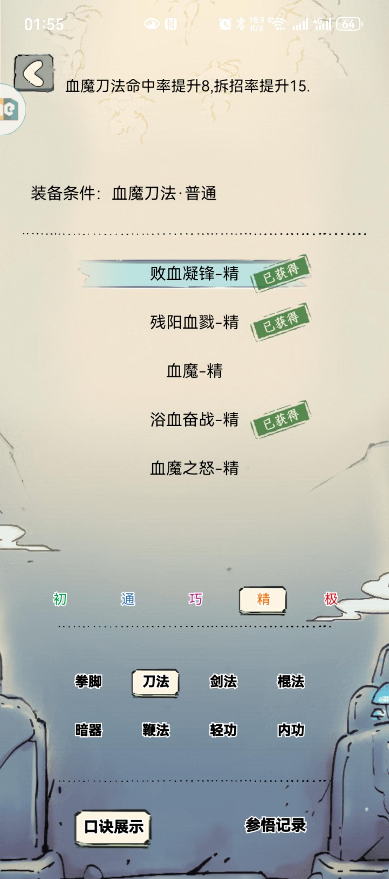 我看到论坛上还没有目前已领悟武功的口诀作用,之前有些大佬发的有些都是1测2测的,但是现在领悟到了正式服基本都被砍了一遍,所以继续按照之前的参照会有所差异,我也就闲的没事把已领悟的武功的口诀都说一下,也方便暴走同僚对比全部领悟的武功的强度 每个武功都有5个口诀,但是最多同时装3个,怎么装,玩家们自己斟酌 由于每个口诀都有5个等级,低等级的提升有限,所以此帖子只写顶级5级口诀(也就是“极”品质的) ~