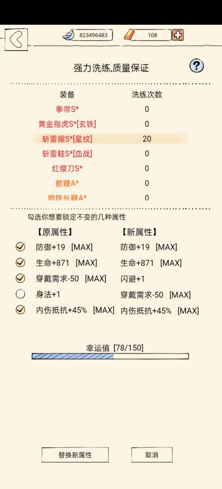 昨天中午睡懵逼了把7臂力的孩子洗了,又花1250金洗回来🥵气的金条全洗装备了还没洗出来👁👁看来锁洗属性是真不行