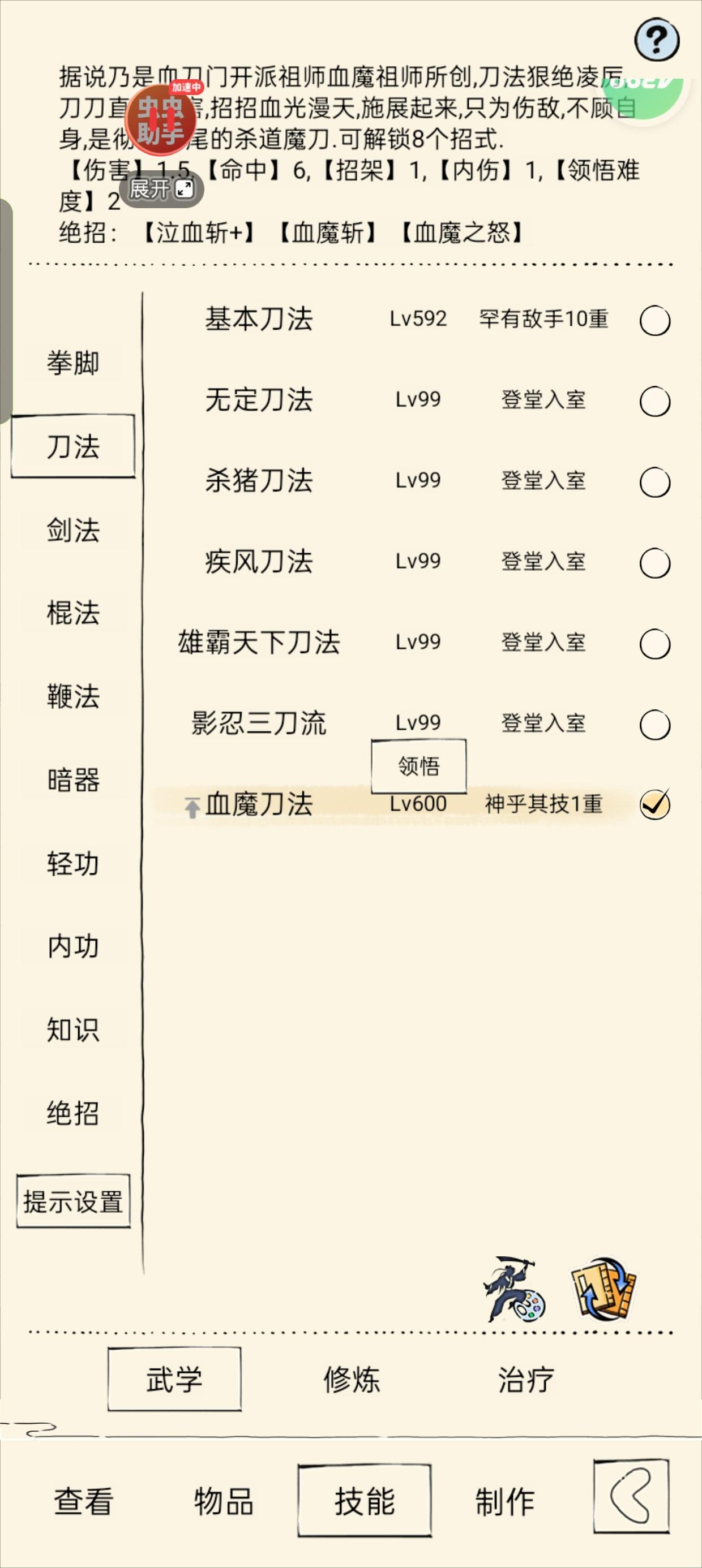 就是现在被打怕了,打谁也打不过,剧情也推不了,现在轻功150,刀100,内100,拳100,拜的是血刀,第三天了,没有一点提升,求大佬们给点意见吧,还有就是我是爆22的新人,有没有大佬给我拜师传个功什么的,感谢感谢大佬们,有群更好,浪费大家时间了