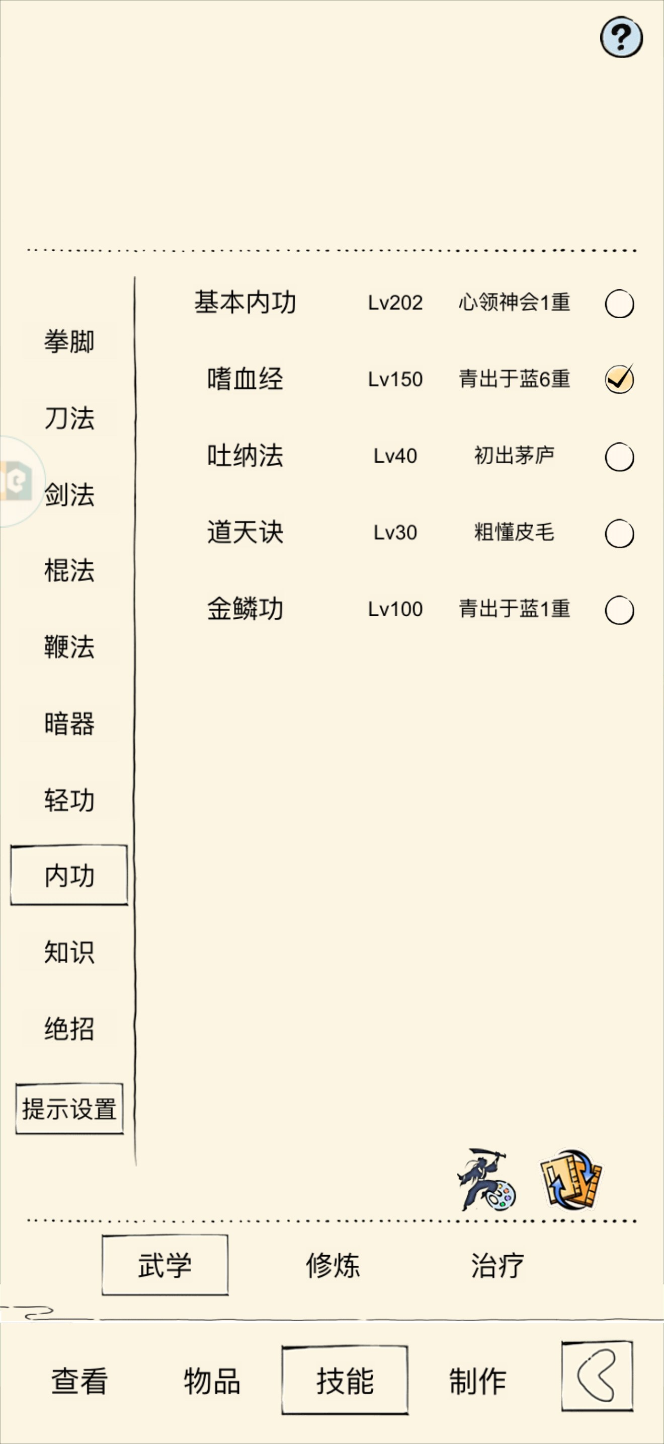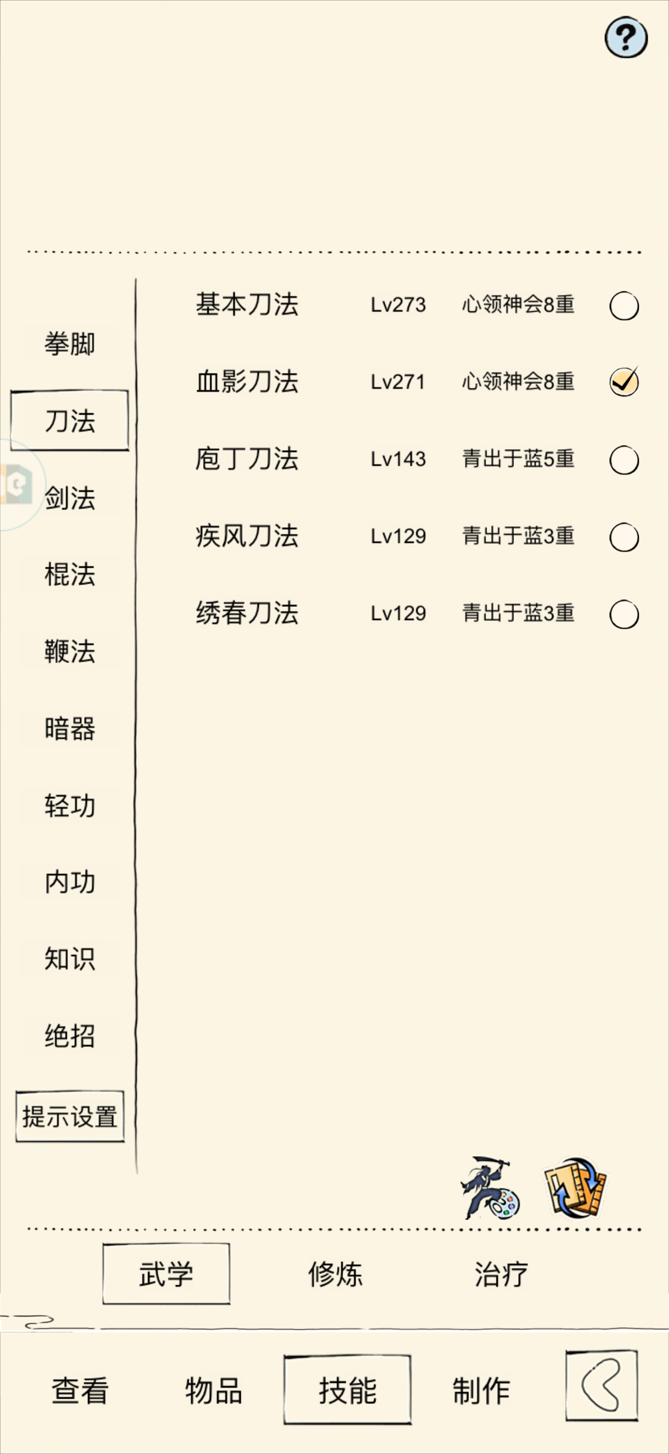 能玩的,好玩的,勉强能玩的,我都会写出来并且点评一下,给玩家们的武学选择提供一个参考。☆极度强势:雪山六阳掌:取得了玩家大赛的第一名,是异军突起的黑马,后期玩家大赛表现极佳,32强数量最多,战绩最好,强控机制在前期、副本中亦能有良好发挥,虽然过日常、打龙乏力,但可以换真龙弥补,可以入坑玩。搭配:九阳、北冥/夺天、洗髓血魔刀法:伤害高,防缴械,吸血,必中,真伤,防反,伤害越打越高……机制最全