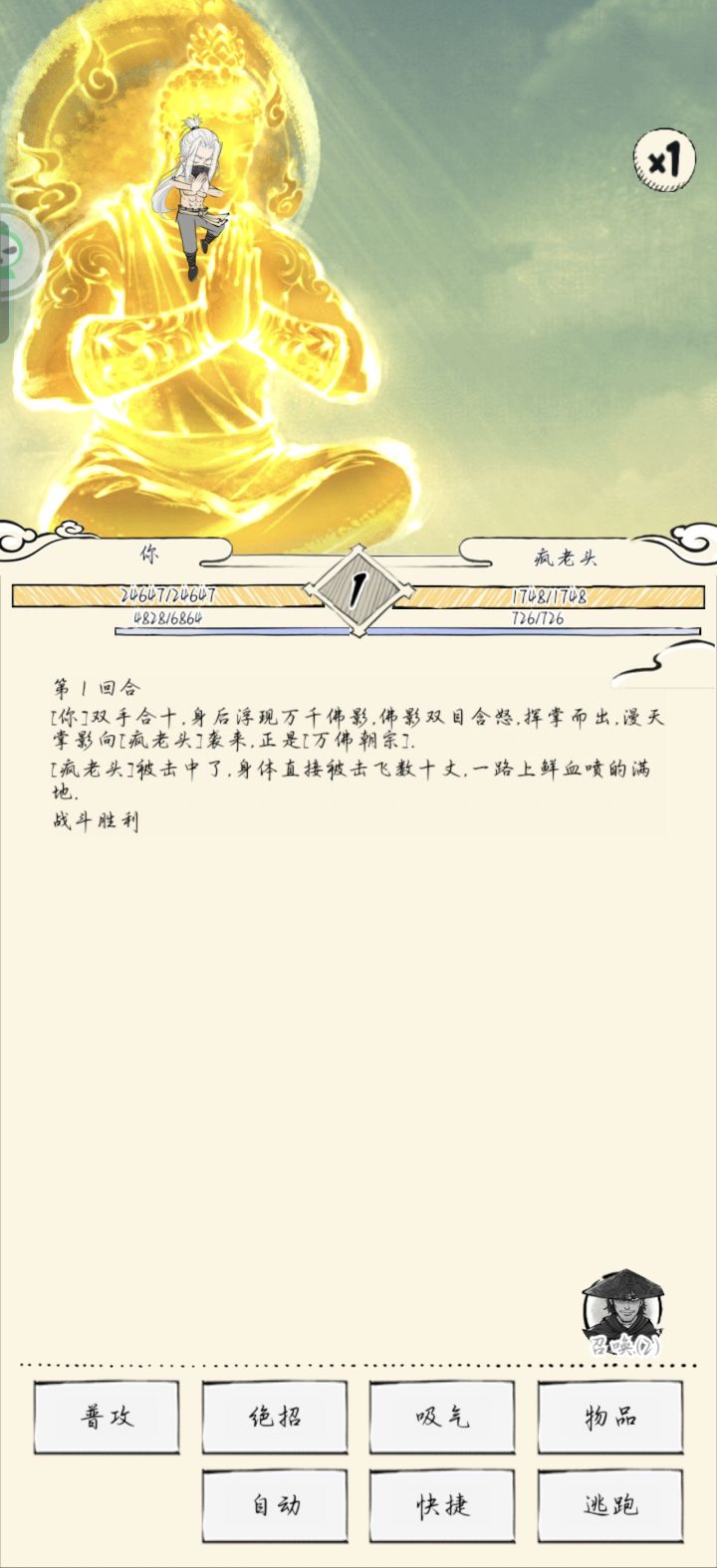 战斗过程:账号配置:臂力:213面板攻击:1526身法:89最终伤害:+15%棍系数:23