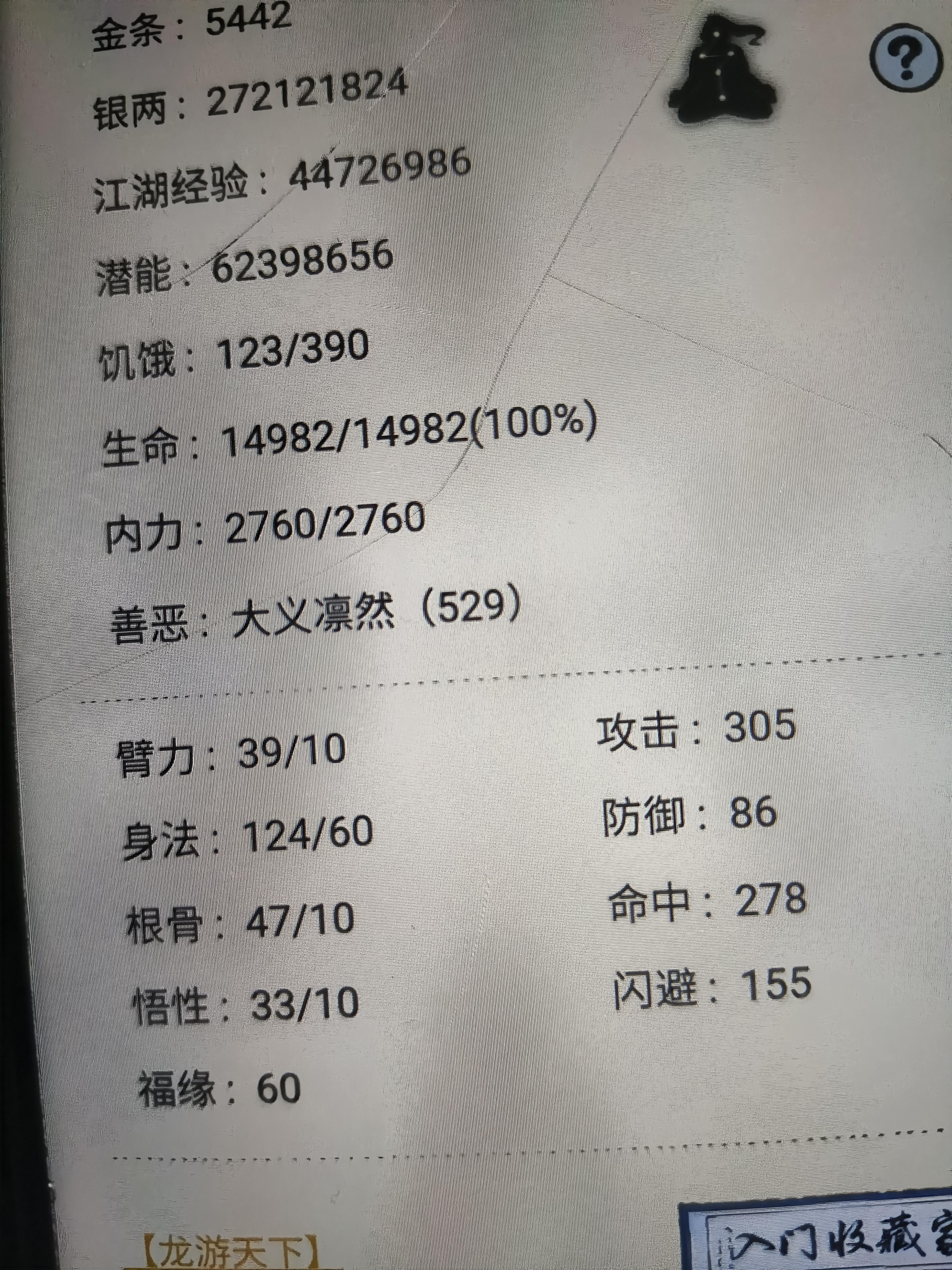 先来简单聊聊每一个属性的作用臂力 居然能够带来格挡的收益 以前居然配十像之力这么超标 居然还能够提供攻击力还有生命值身法 每一点身法居然能加高达一闪避和一命中 开局领先身法居然能够比别人先手根骨 一点根骨居然能带来10点内力的高额收益 躺床居然还有额外的速度加成悟性 居然有传说中的潜能减免 让玩家游玩游戏的时候能够遥遥领先破案了 其实没有招笑的属性只有招笑的人臂力怎么哭:我去,命中居然