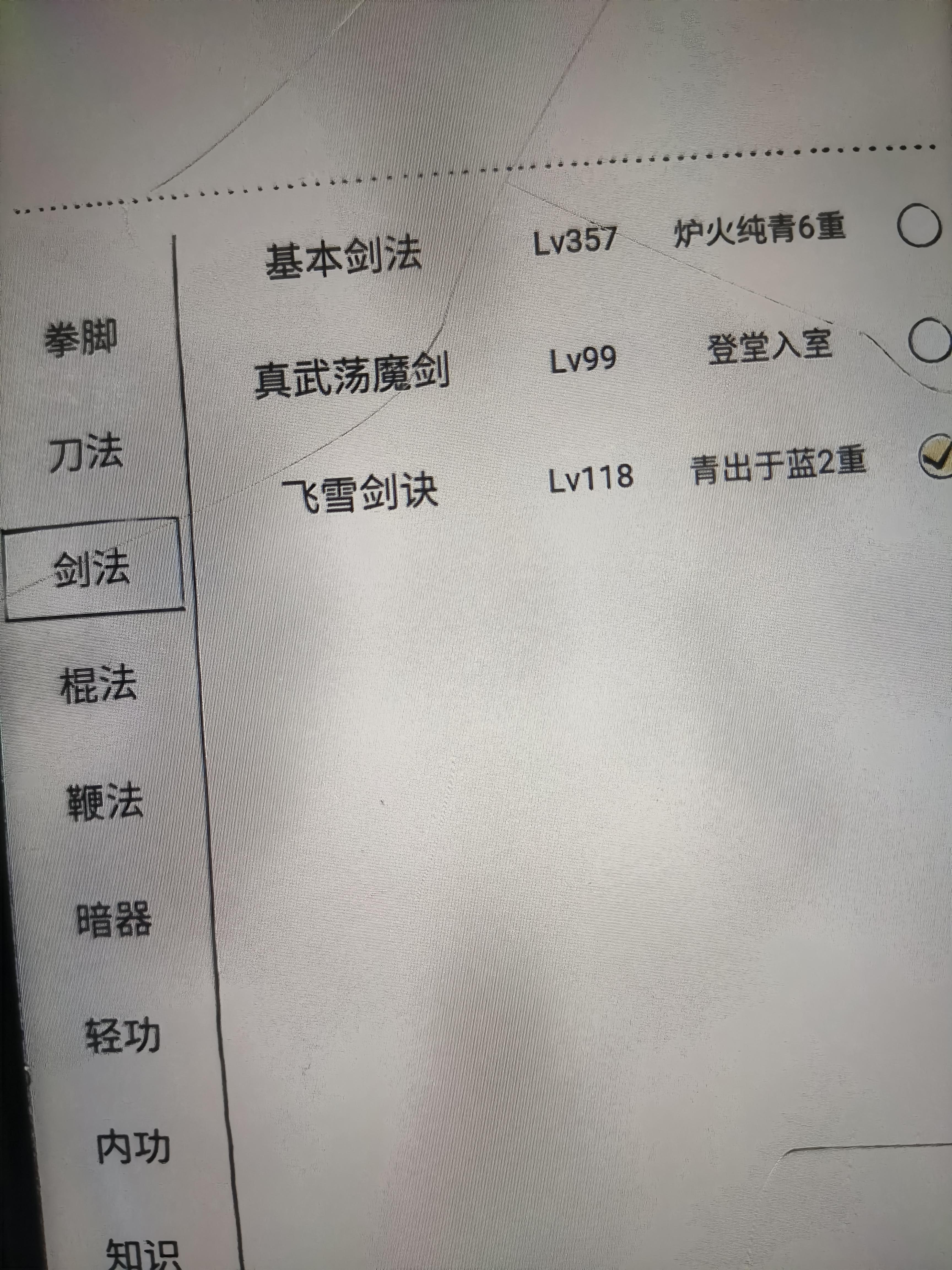 两仪剑法一级的双手就能用。几乎没有内功投入,还有悟性发育,那为啥很多人还选择玩别的武学,感觉都要使劲升级内功