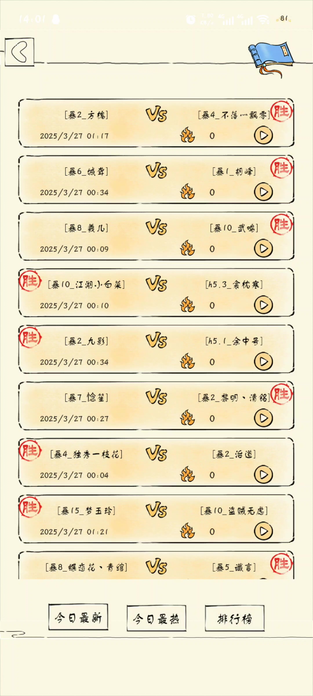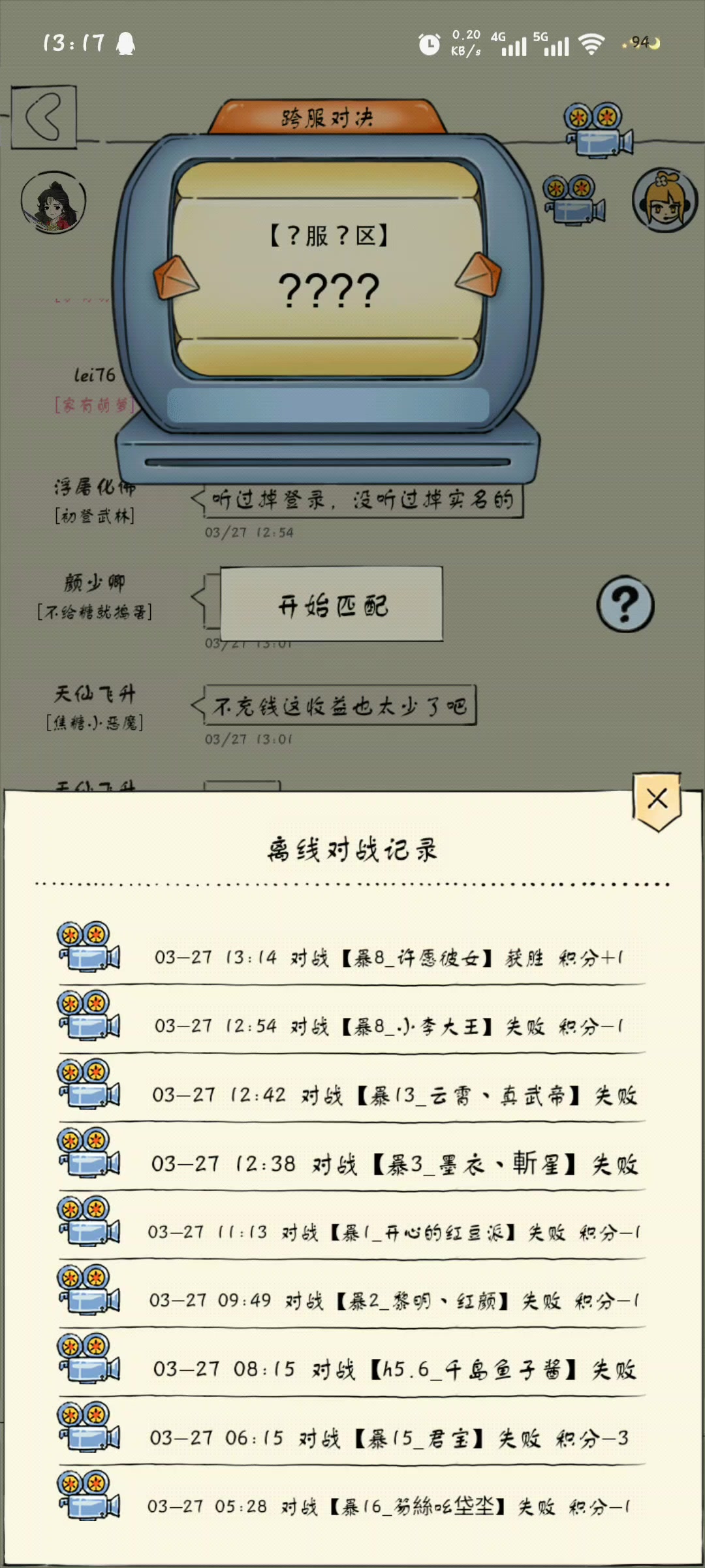 今天打了40分钟跨服,大概接了40连胜,其间碰到6次21。21洗髓,21双手,21罗汉都碰到了,基本都是顺手灭了,也可能有练度差异。所以相信自己选的武学就行了[表情_看我的]