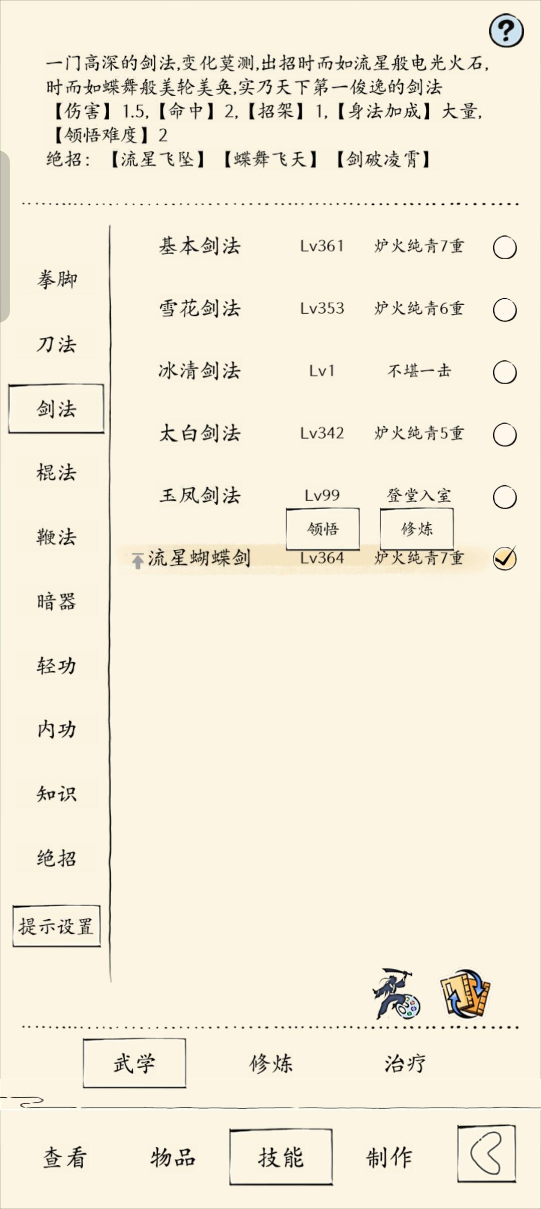 能玩的,好玩的,勉强能玩的,我都会写出来并且点评一下,给玩家们的武学选择提供一个参考。☆极度强势:雪山六阳掌:取得了玩家大赛的第一名,是异军突起的黑马,后期玩家大赛表现极佳,32强数量最多,战绩最好,强控机制在前期、副本中亦能有良好发挥,虽然过日常、打龙乏力,但可以换真龙弥补,可以入坑玩。搭配:九阳、北冥/夺天、洗髓血魔刀法:伤害高,防缴械,吸血,必中,真伤,防反,伤害越打越高……机制最全
