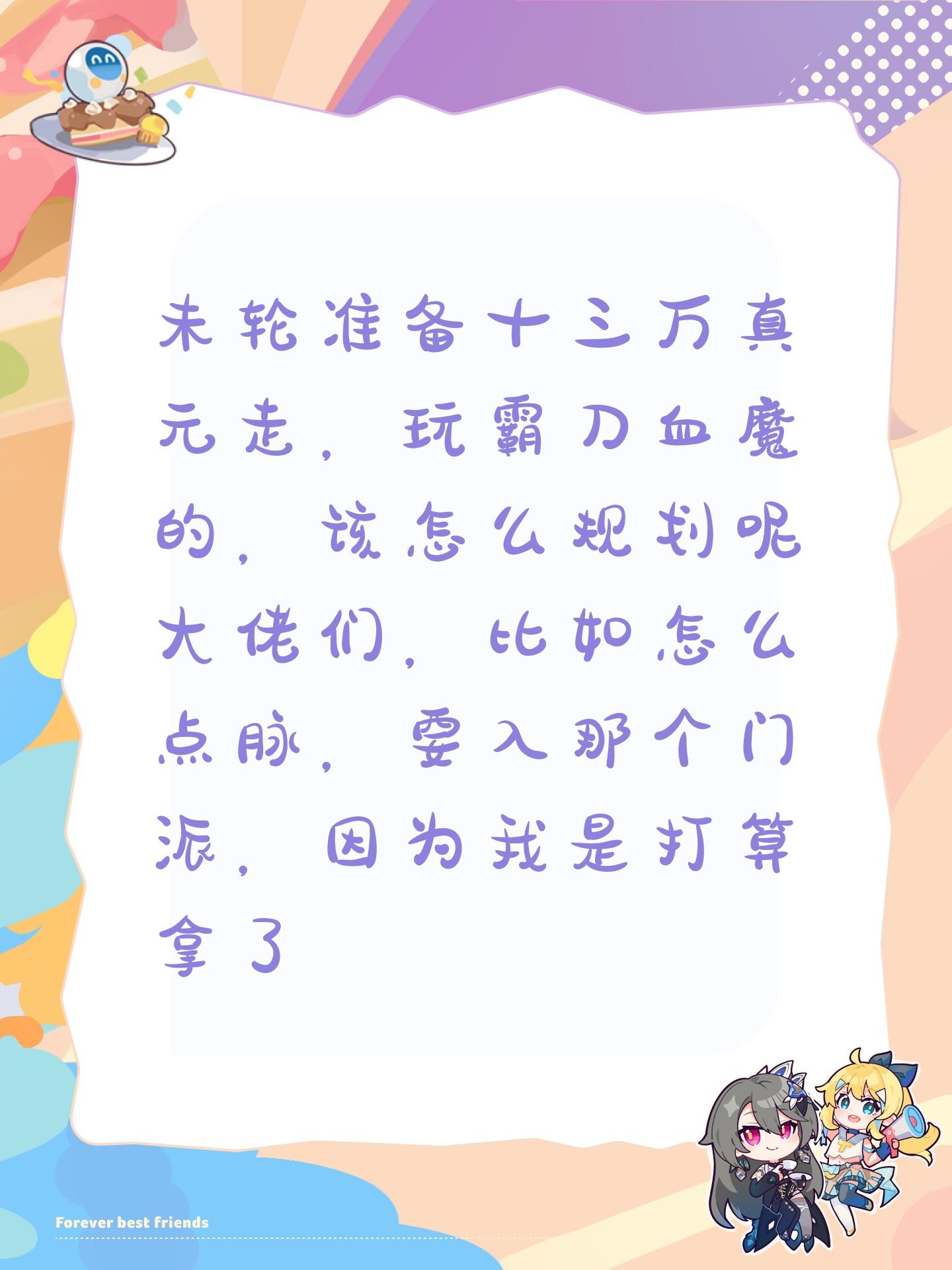 未轮准备十三万真元走,玩霸刀血魔的,该怎么规划呢大佬们,比如怎么点脉,要入那个门派,因为我是打算拿了三刀带着一块走。所以血刀和伊贺就可以不去了#暴走英雄坛游戏软件v10