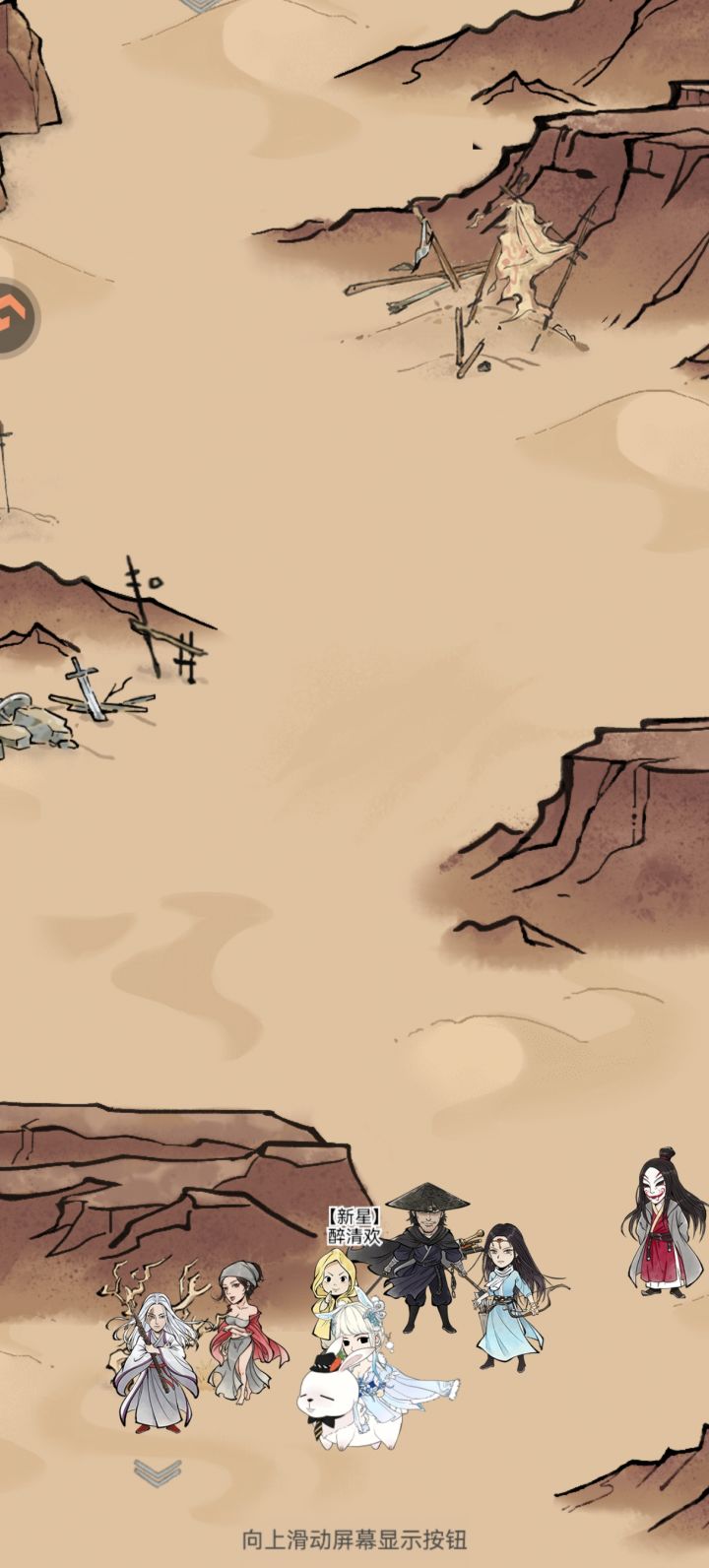 点平安镇的告示牌。前往大漠,位置在大理城右下角。到了大到了大漠地图,点地图上的这几个刀剑。每个都点至少两下。然后会触发剧情,让你去摸那个人。奖励潜能和九转接下来往地图上方走。然后进去之后触发剧情,直接点跳过,触发战斗。奖励韩愈丹5个。结束战斗之后会变成这样,这时候往地图右上方走。然后触发剧情点跳过。奖励九转潜能。然后再往地图左边走。进入大漠山谷。触发剧情就点跳过,点这个包