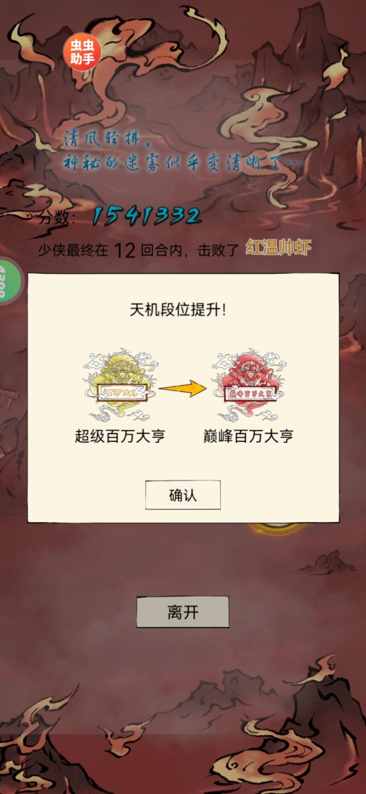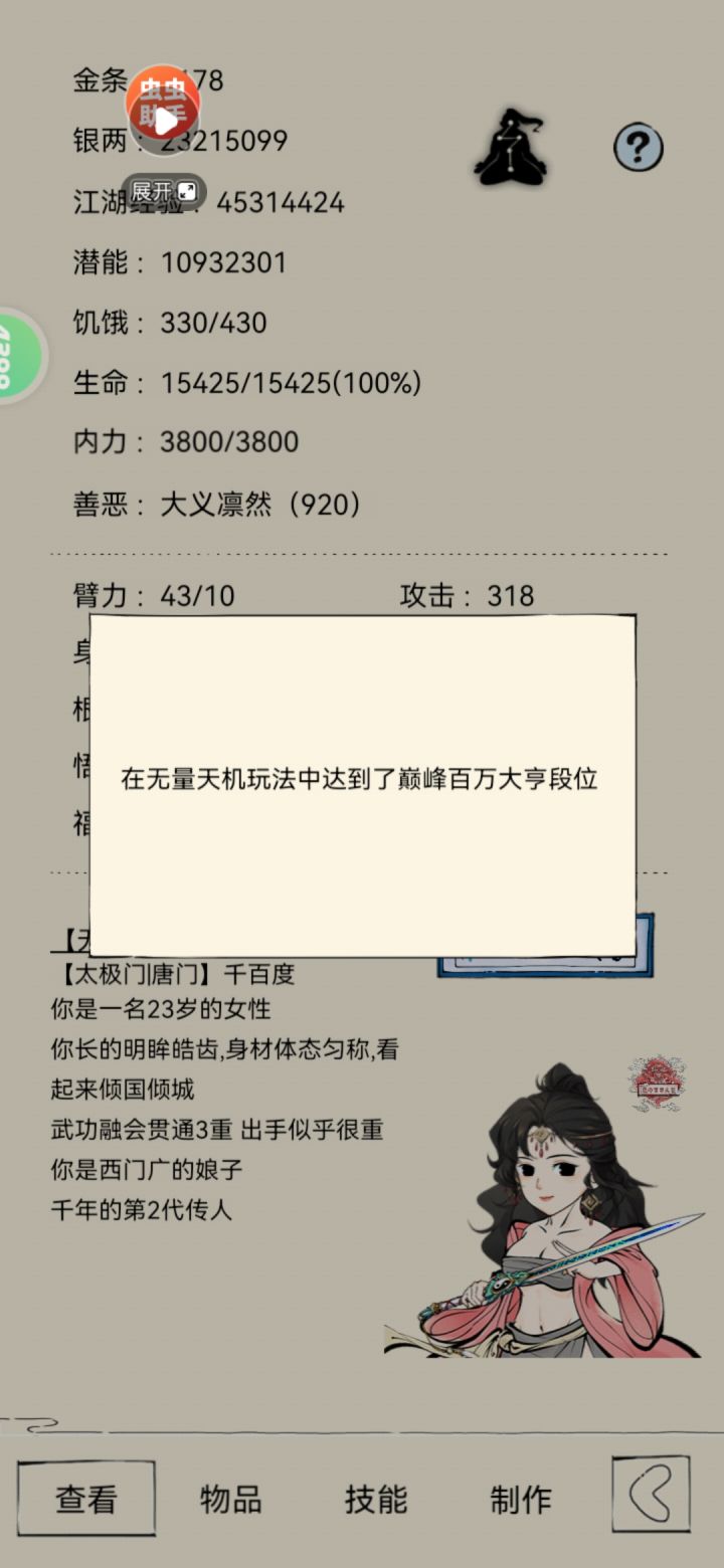 本来想通个火二的,八卦开局前面也是很难打,只能赌五绝和普攻套,快无了的时候终于来了个林刀,三层开始酷酷欧,天象免缴把试炼过了,后面靠着灼烧一直苟,内功就拿了个寒玉,本身以为事情已经结束了,结果第四五层打了4次pvp,牢薛和冤种直接给我锁血最后一个和全极八卦干出来了,然后就是无脑冲,商人没有眼药不舍