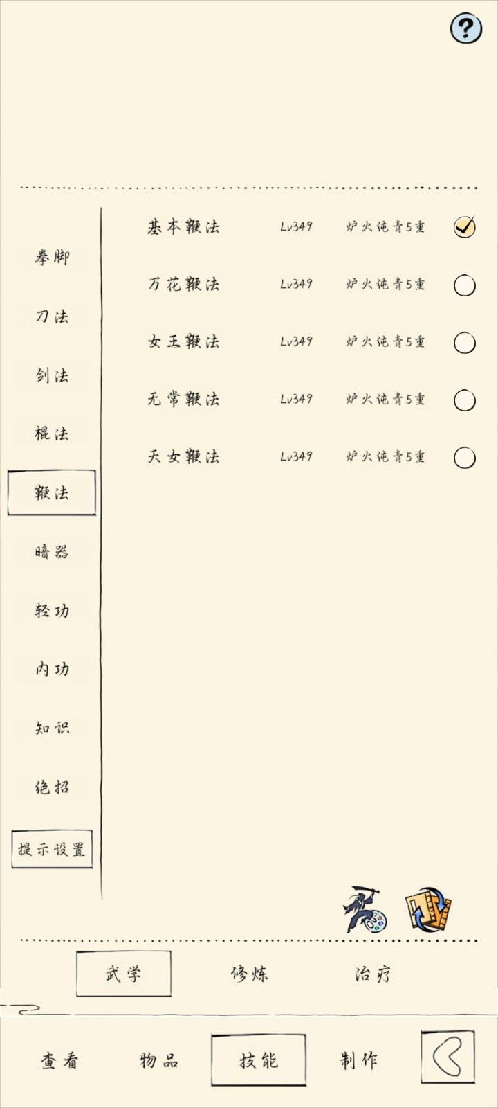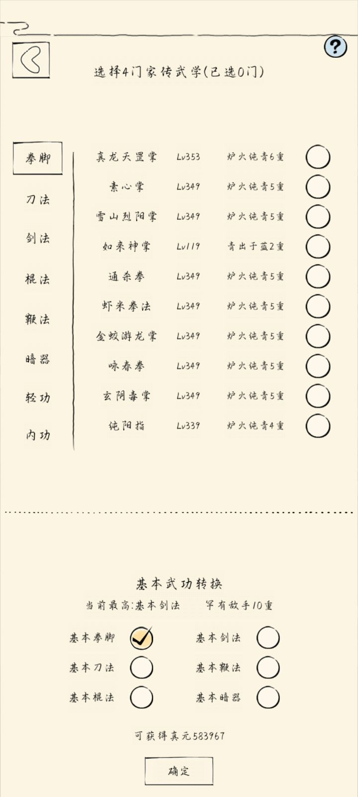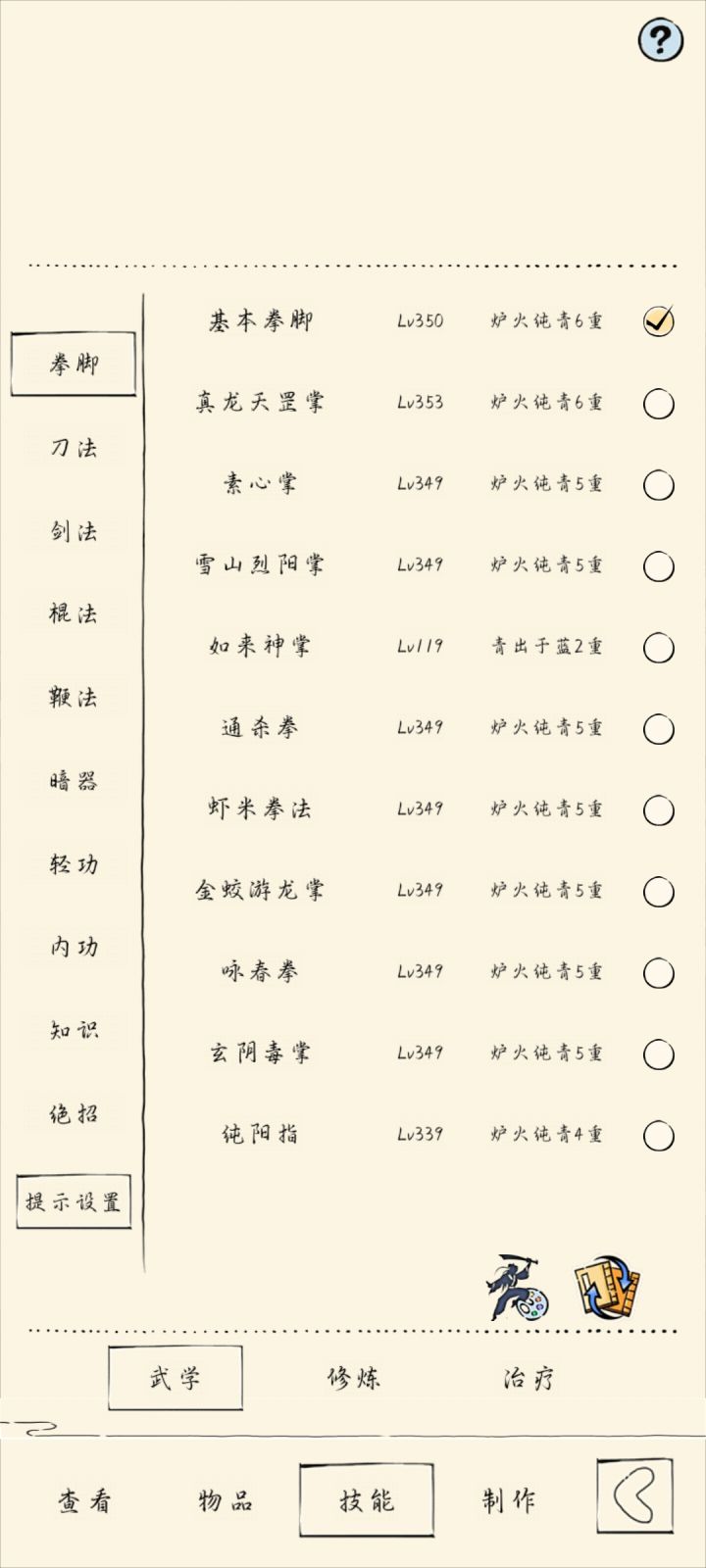 这是我目前所有的武学和等级,基本上都349了,才58万多一点点,接下来该怎么躺才可以72万啊