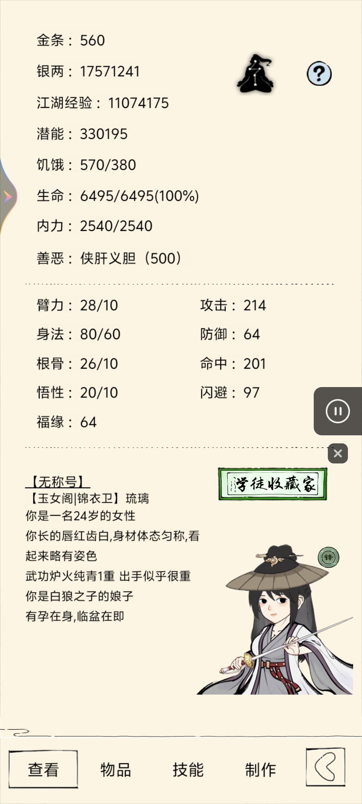 先来简单聊聊每一个属性的作用臂力 居然能够带来格挡的收益 以前居然配十像之力这么超标 居然还能够提供攻击力还有生命值身法 每一点身法居然能加高达一闪避和一命中 开局领先身法居然能够比别人先手根骨 一点根骨居然能带来10点内力的高额收益 躺床居然还有额外的速度加成悟性 居然有传说中的潜能减免 让玩家游玩游戏的时候能够遥遥领先破案了 其实没有招笑的属性只有招笑的人臂力怎么哭:我去,命中居然