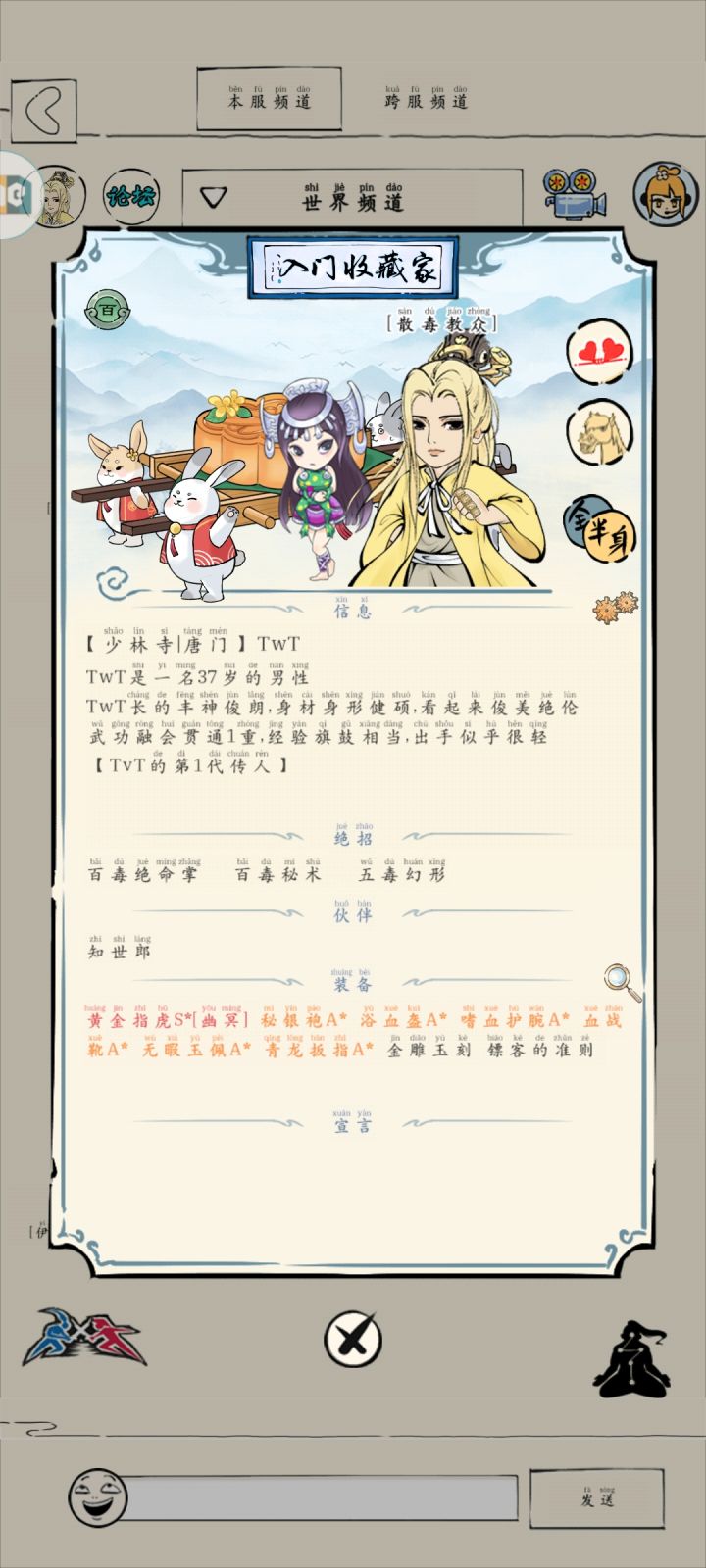 想玩21所以进的太极门,但后来看攻略说未轮太极很坐牢,但是充了月卡不想重开qwq,现在太极剑190,轻内150,装备啥的也不太懂,那个门派门口的拜师也只有三个人,全都申请了一遍没人同意,看各种攻略感觉也好复杂看不懂,很多攻略也比较老了,有点无头苍蝇的感觉了
