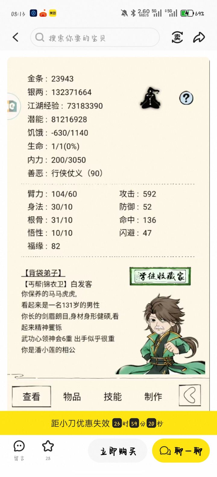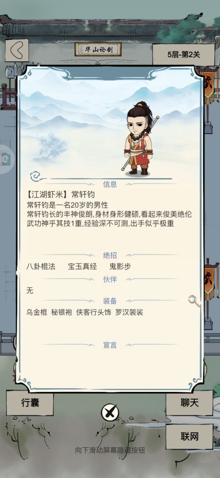 这一遍已经是我十几遍里最好的了,除了差一个大宫主的增伤和二公主移花接玉其他啥都有了,有普攻增伤45的,还有那个每赢一把加2点四维的,有宝物十象,黄狗套、乞丐套、反击套、无羁套都是齐的,然后八卦棍是全极的,绝品毒扔了四个,ssd还有两个,还有一个主角光环,但是根本打不动,打到最后没内力了只能投了,打了六十多个回合了是天赋有要求吗?我这个天赋前期贼费劲,之前
