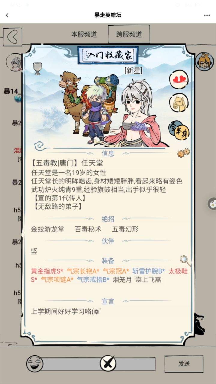 首先要事先说明一下,我没啥实力,而且是第一次写长帖这个帖子就是会更新一下我的成长在暴走里面我会拿出周末时间精力去更新更新好了好了,正文开始先介绍我自己本人是一名初中生啊,而且是一个住校生所以说除了寒暑假,我比较投入在玩暴走,周末基本上也只有单休的所以说星期一到星期五我基本上不在当然有信息课有时候可以救我一下✪ω✪先讲一讲未轮的时候,我的感受吧我说实话了,因为我是住校生,我就每一次