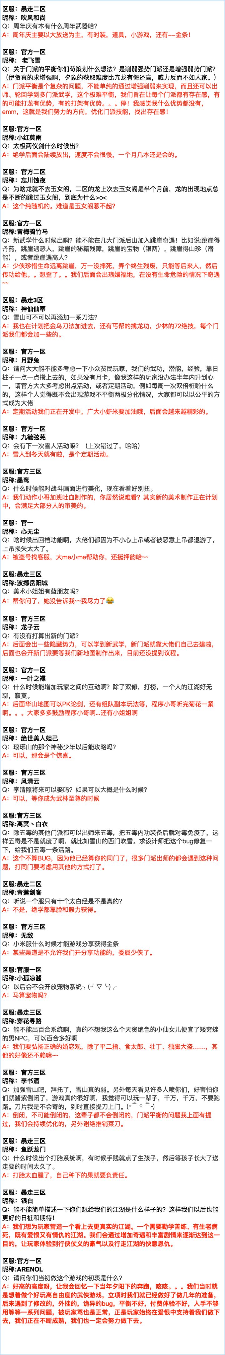 然后,非常感谢各位热情参与此次的「与开发团队面对面」活动。由于近一个月来整个开发团队都投身于周年庆大版本更新的制作当中,可能无法一一回复每个玩家所提出的问题