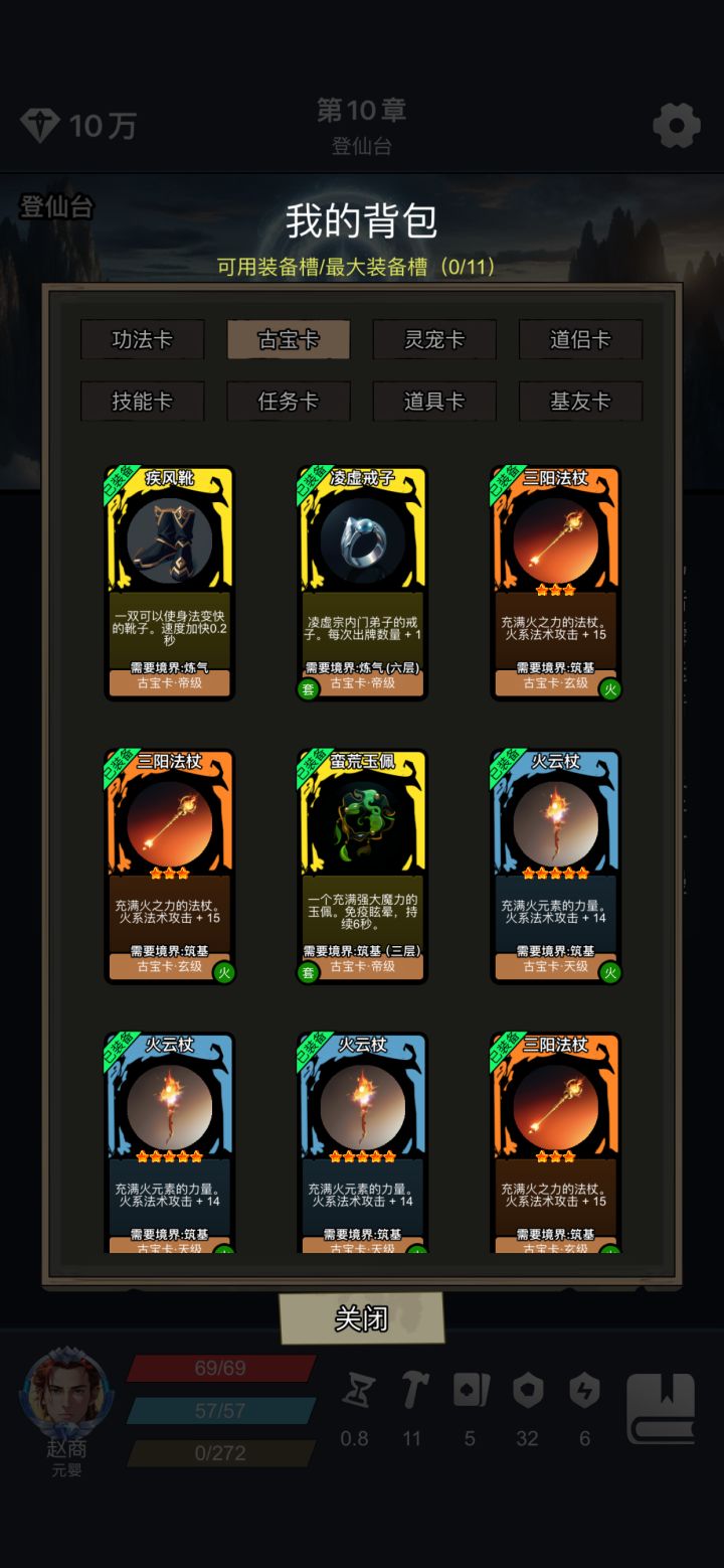 肝了一天,终于过了。配图里是我的通关配置,升级加点是物防和血量,差不多是物防2:1血量这么加。破镜全加出牌数,目前量是王道啊。补天石很重要很重要。技能一定要优先群攻和高伤,后期要用忘忧删掉其他的,只留这四个群攻和被动。三个必须存档节点:1:玄冰宗打合欢那块,我靠重生石过的,优先集火带头那个,然后要挨个集火。2:骑鸟飞的那块,八成成功率,选择前也得存档,不然可能身死道消。3:战十妖,