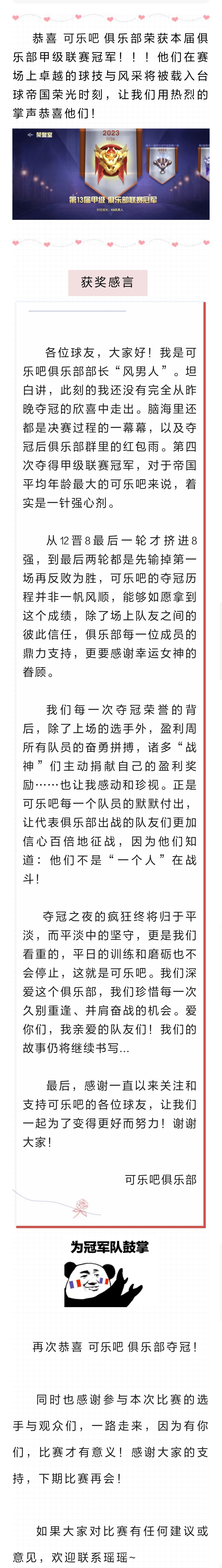 第十三届甲级联赛 | 可乐吧俱乐部,冠军