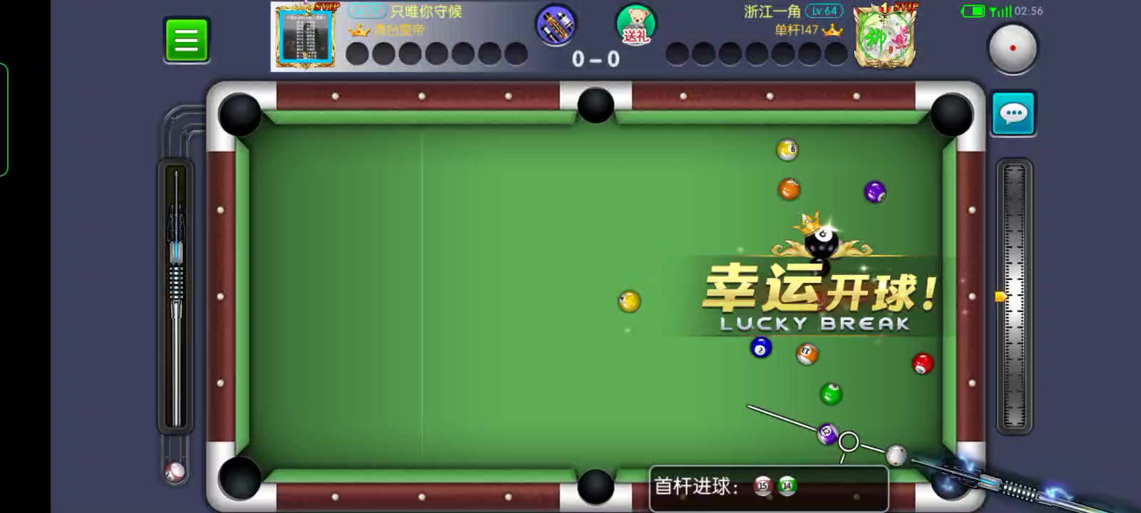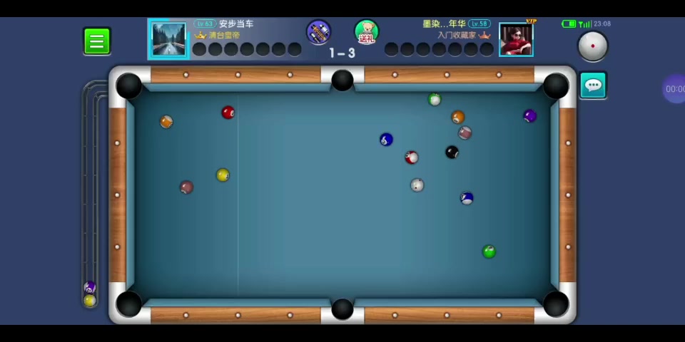 对手开球进四个双色球,可惜进白了,让我轻松清一局