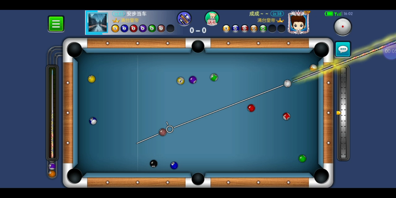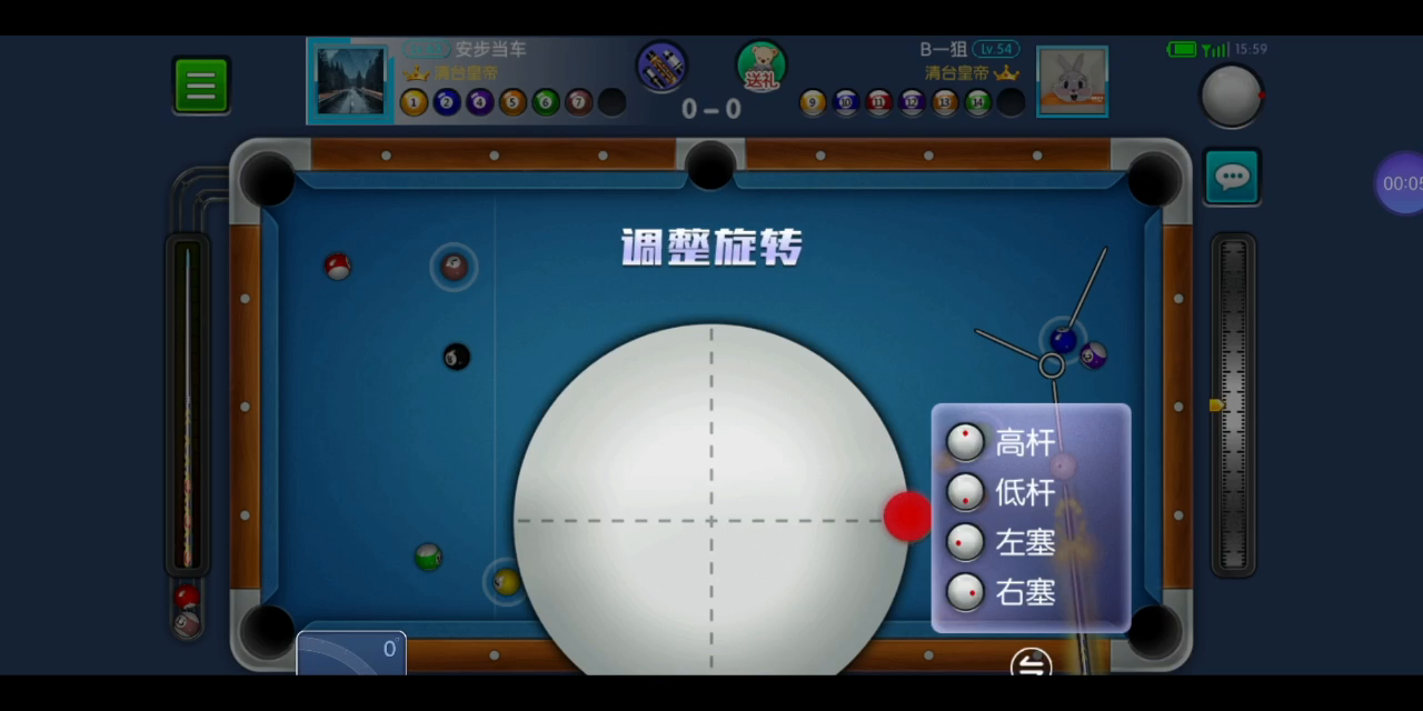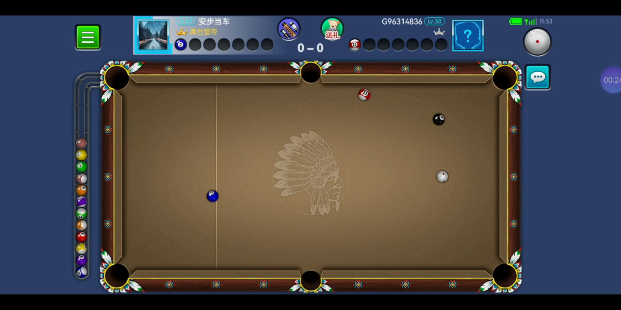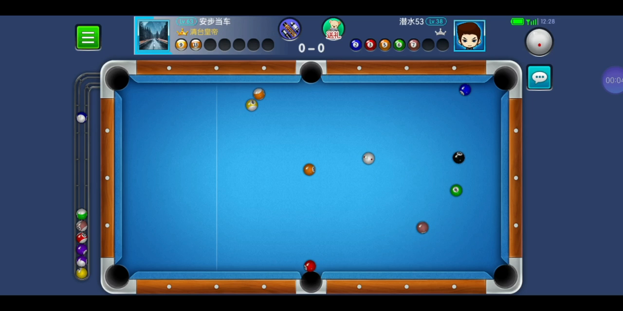 开球黑八在袋口,打7号是拉过来了,打4号又担心碰到黑八进袋,还好没碰到。
