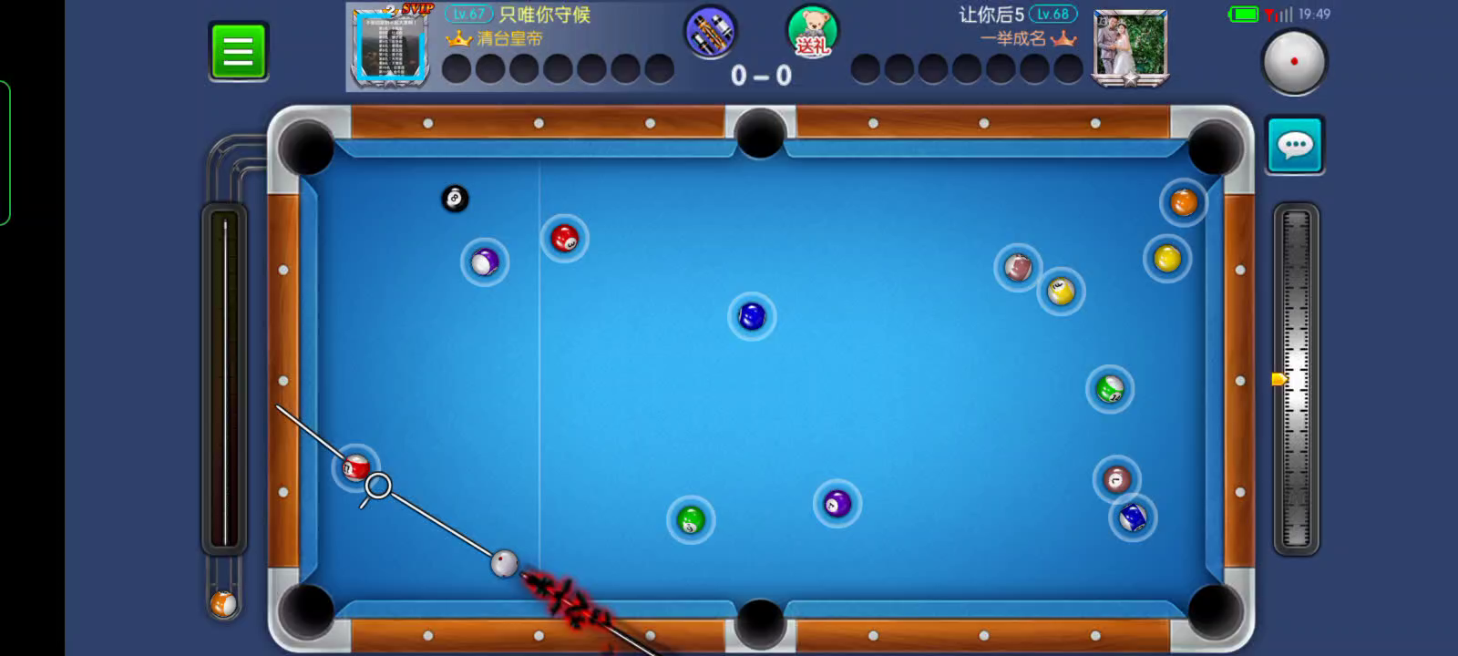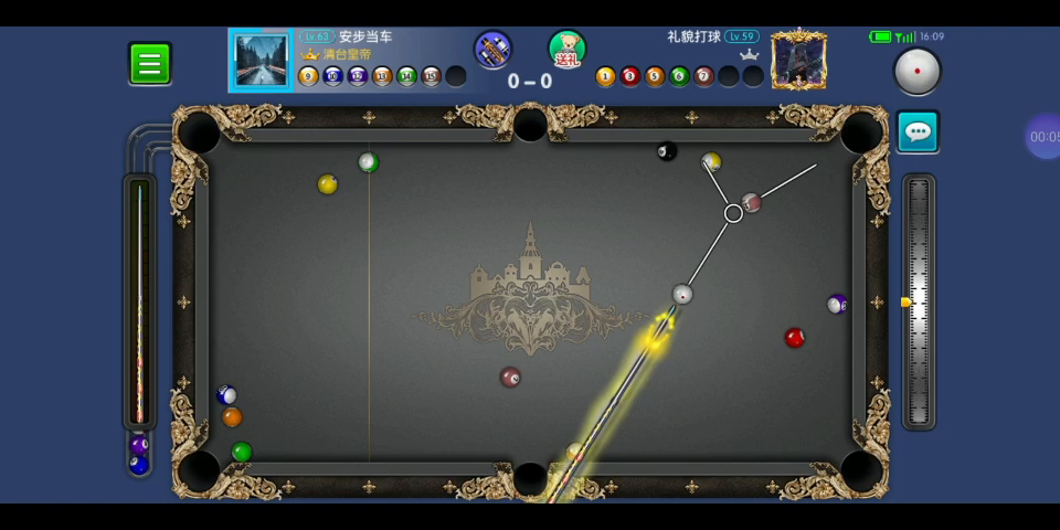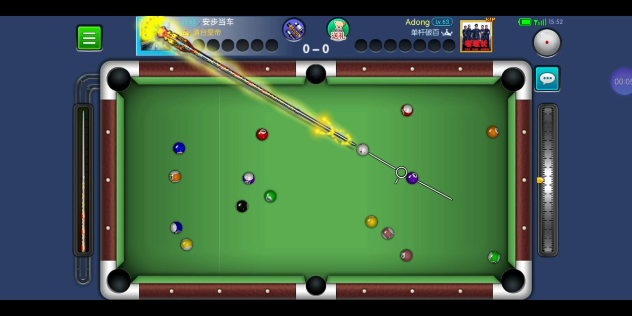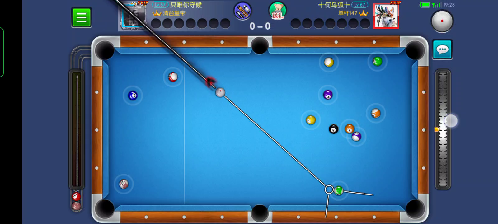 开球黑八在袋口,打7号是拉过来了,打4号又担心碰到黑八进袋,还好没碰到。