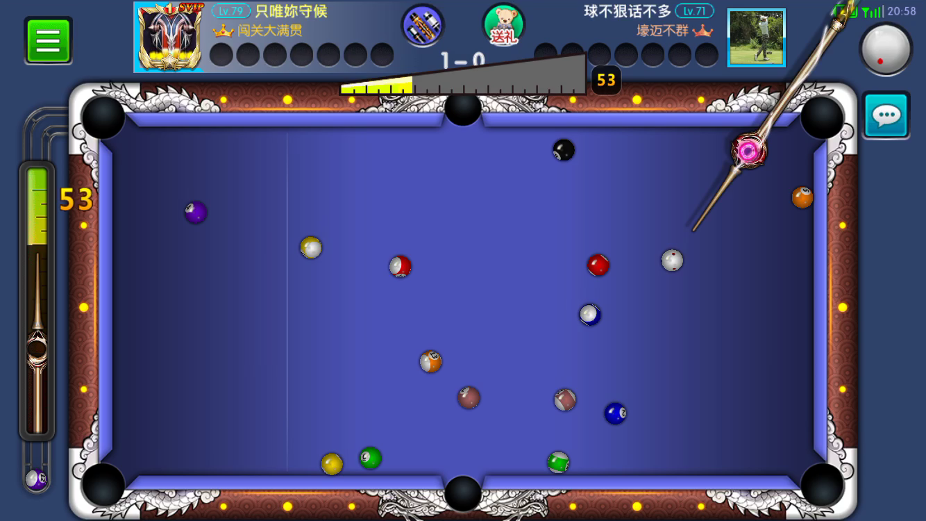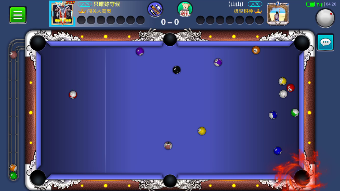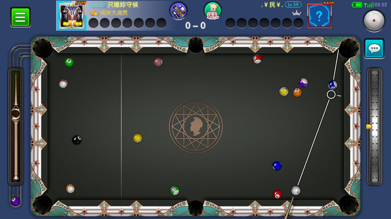 打九K球,不要力大,K好了就可以清台了,但黑八不好走位,一定要注意