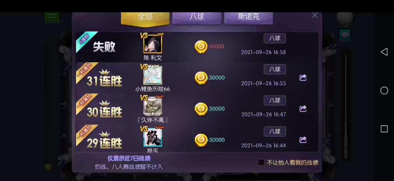 分享一个球友的北京战绩31连胜!!!!