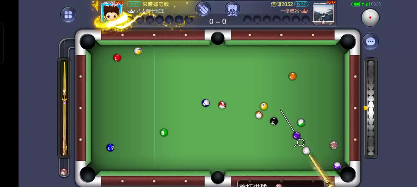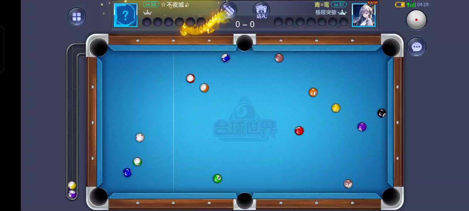 打第一杆就差点进白了,后面打4号又重了,还好黑八能打中袋