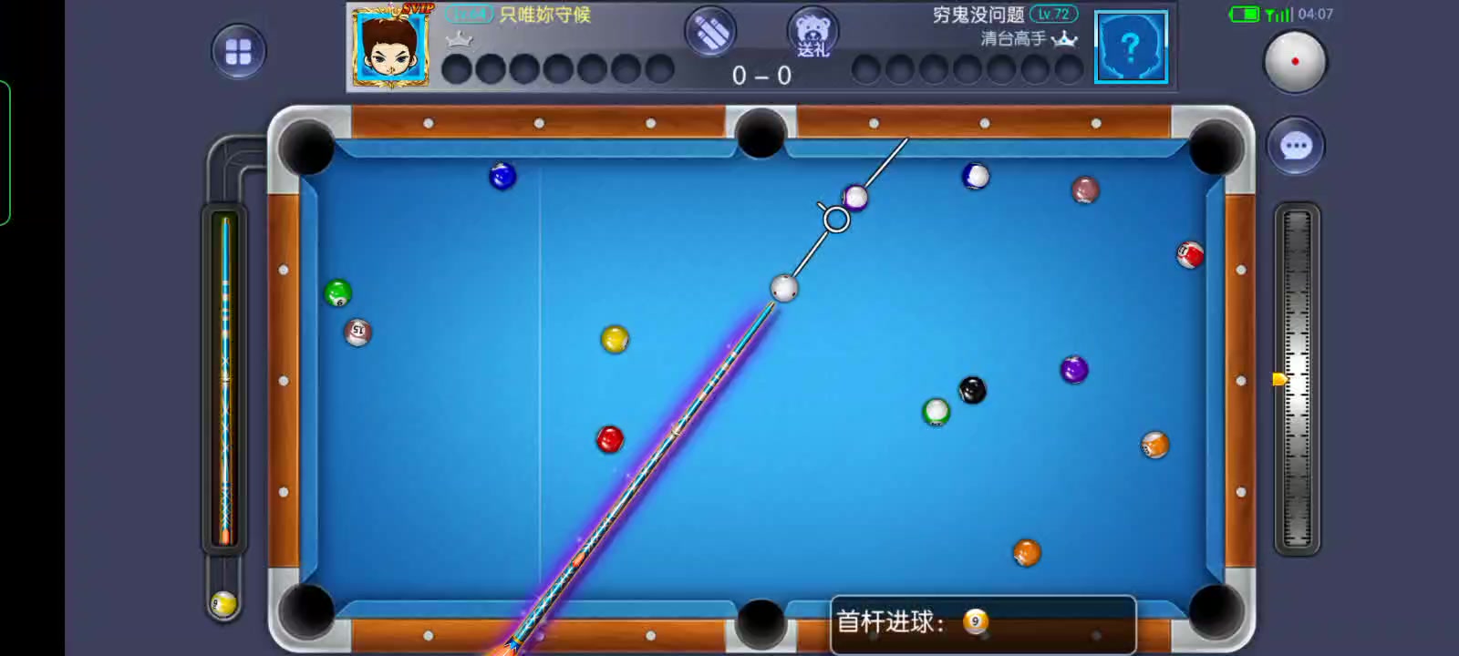 黑八是死球,趁还没确定球色,选择打3号K一下