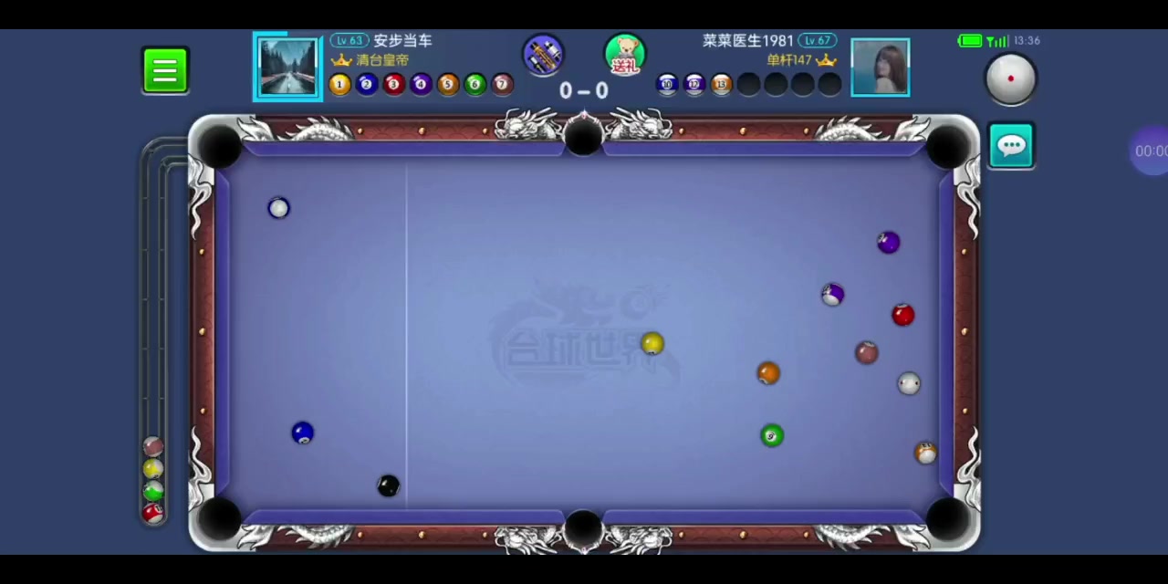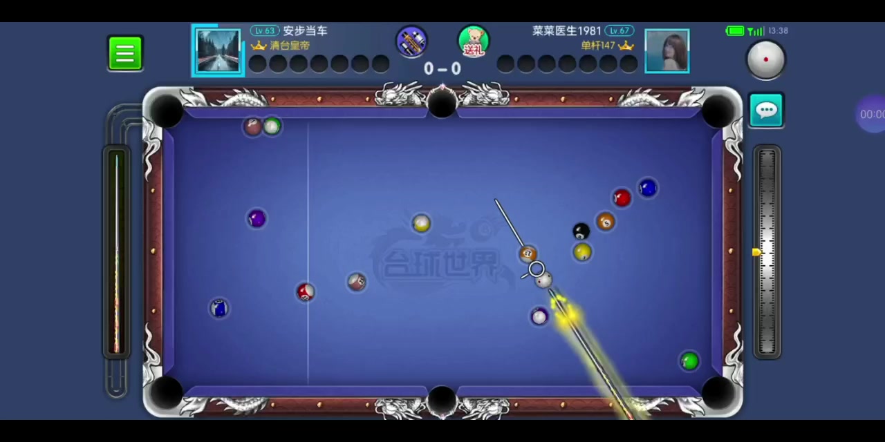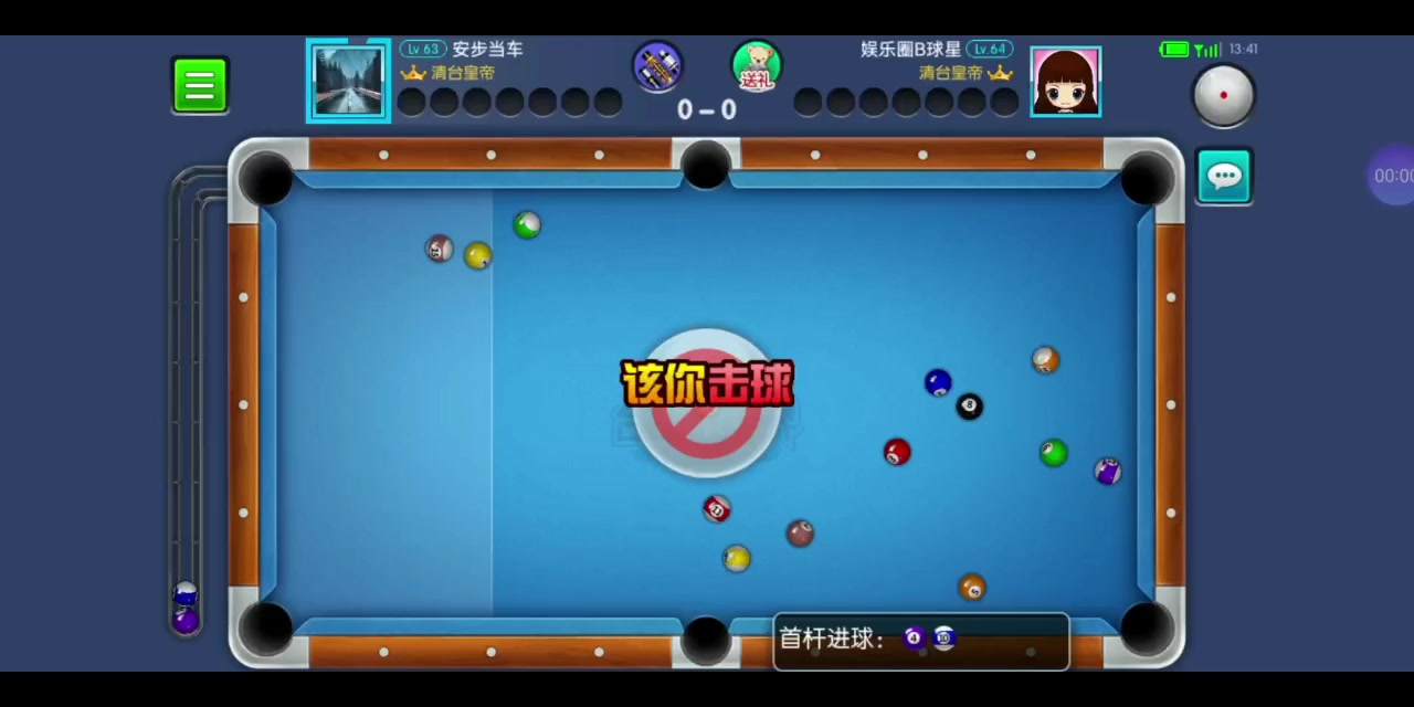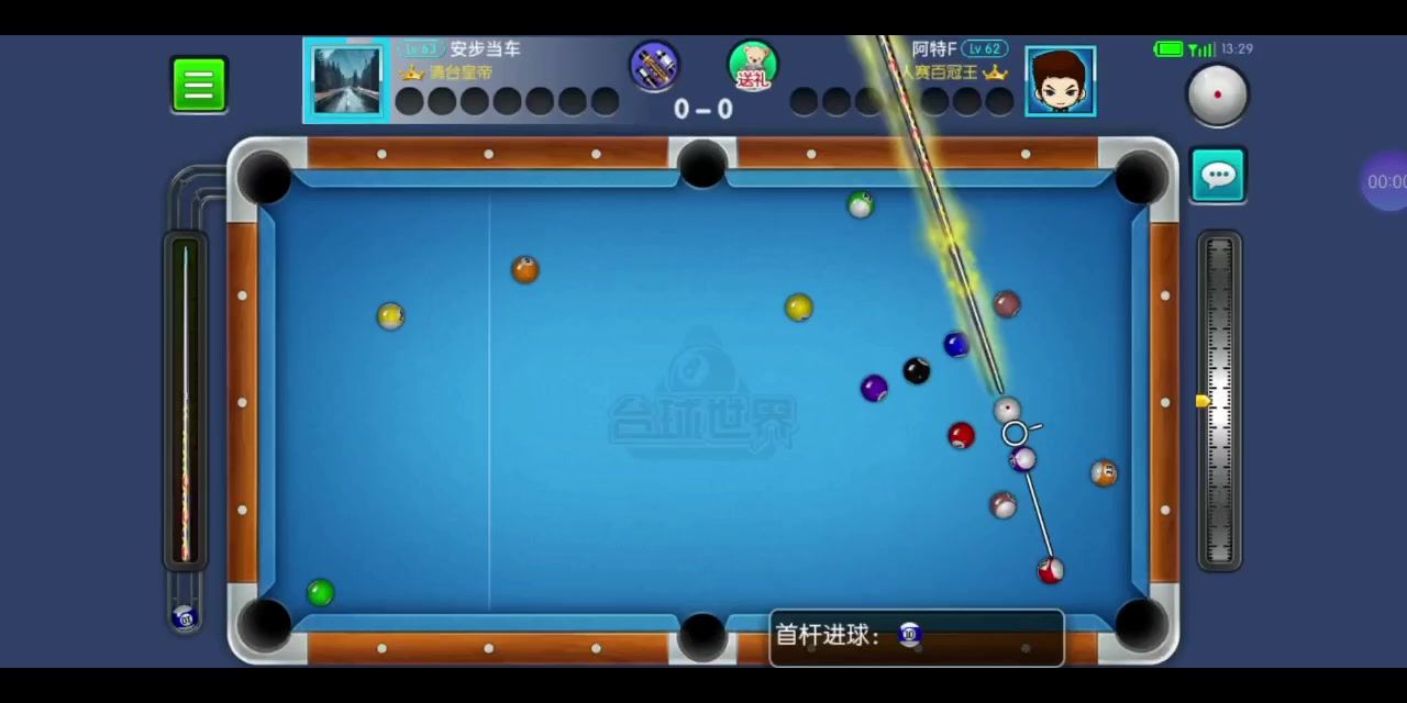 对手开球进白,第一杆就轻了,本来想打15,还好最后打14走到位了