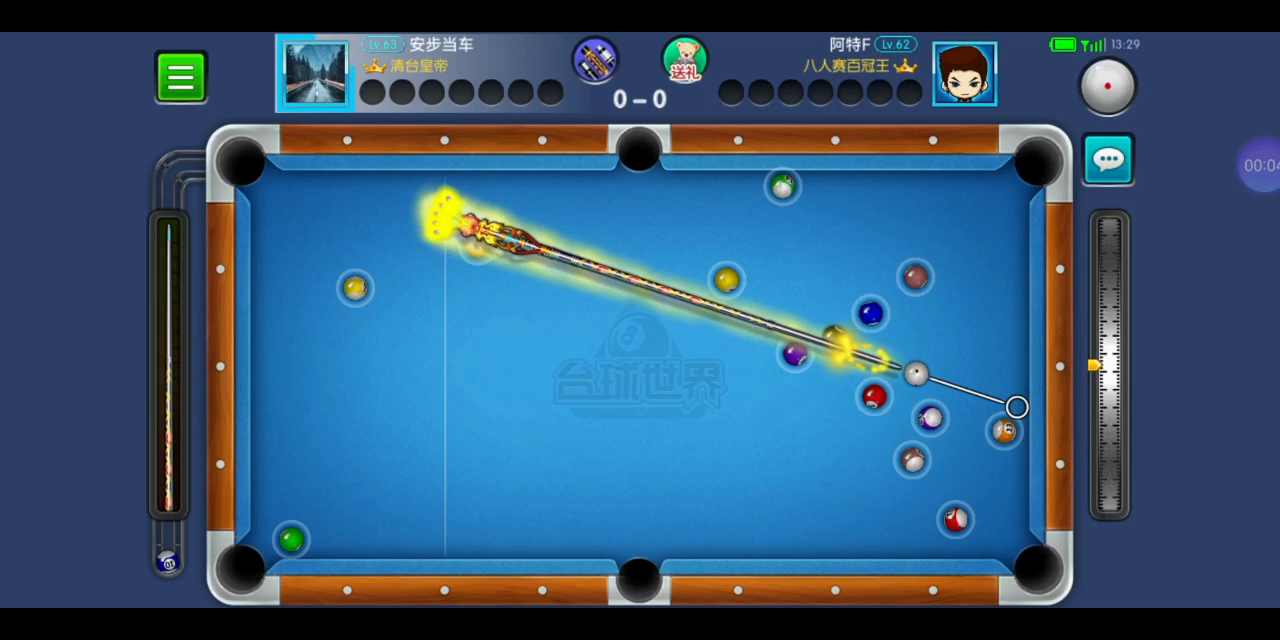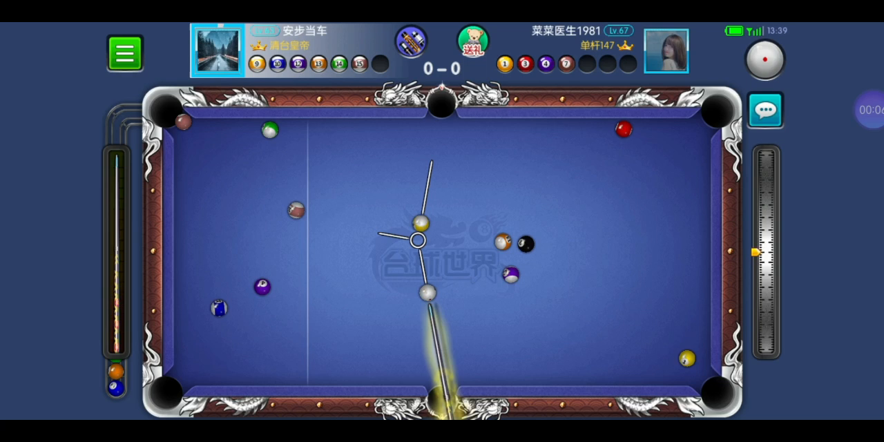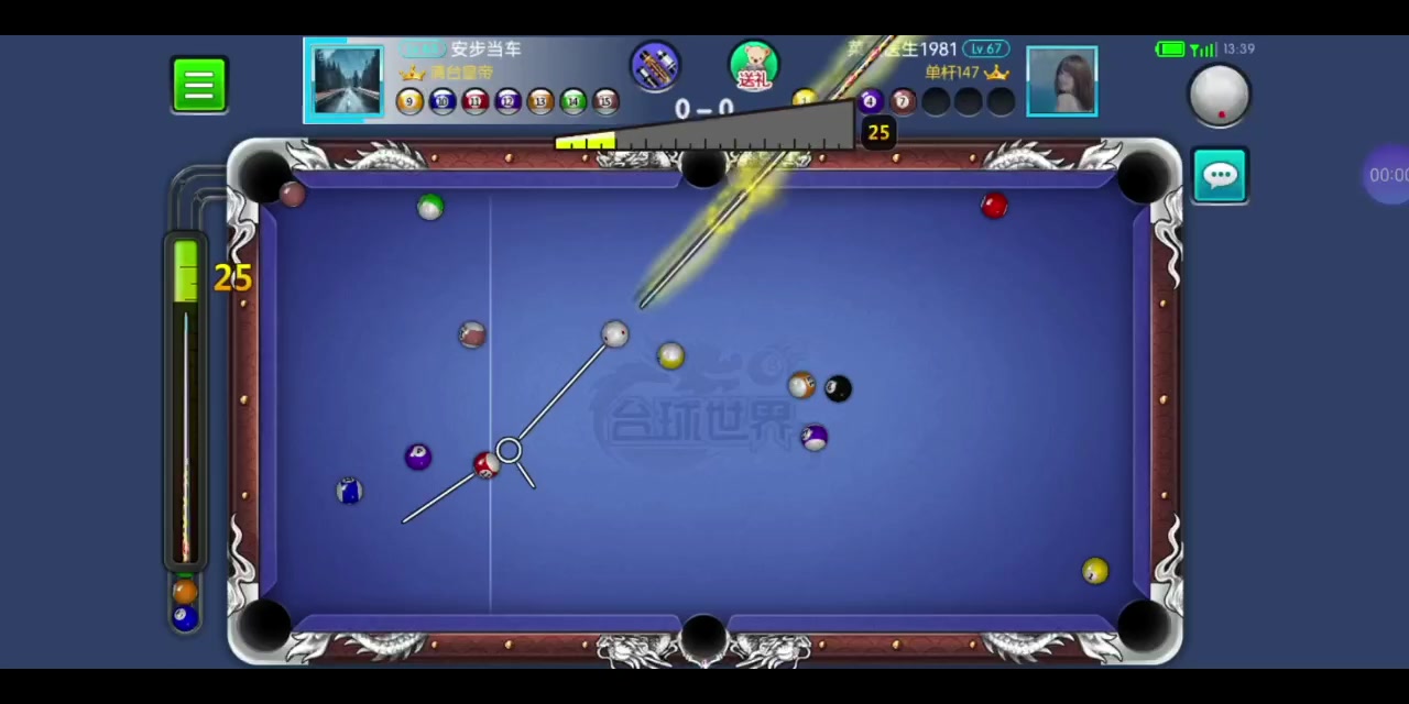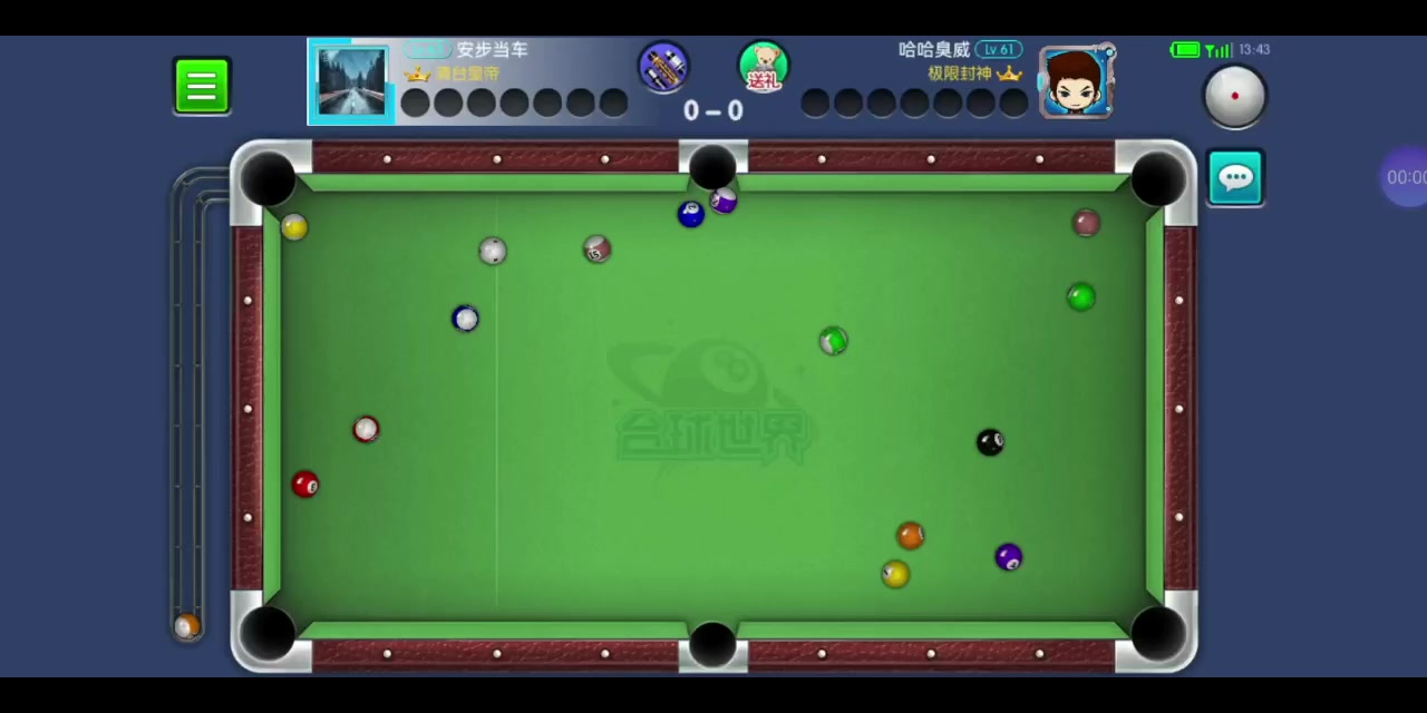 对手开球进白,第一杆就轻了,本来想打15,还好最后打14走到位了