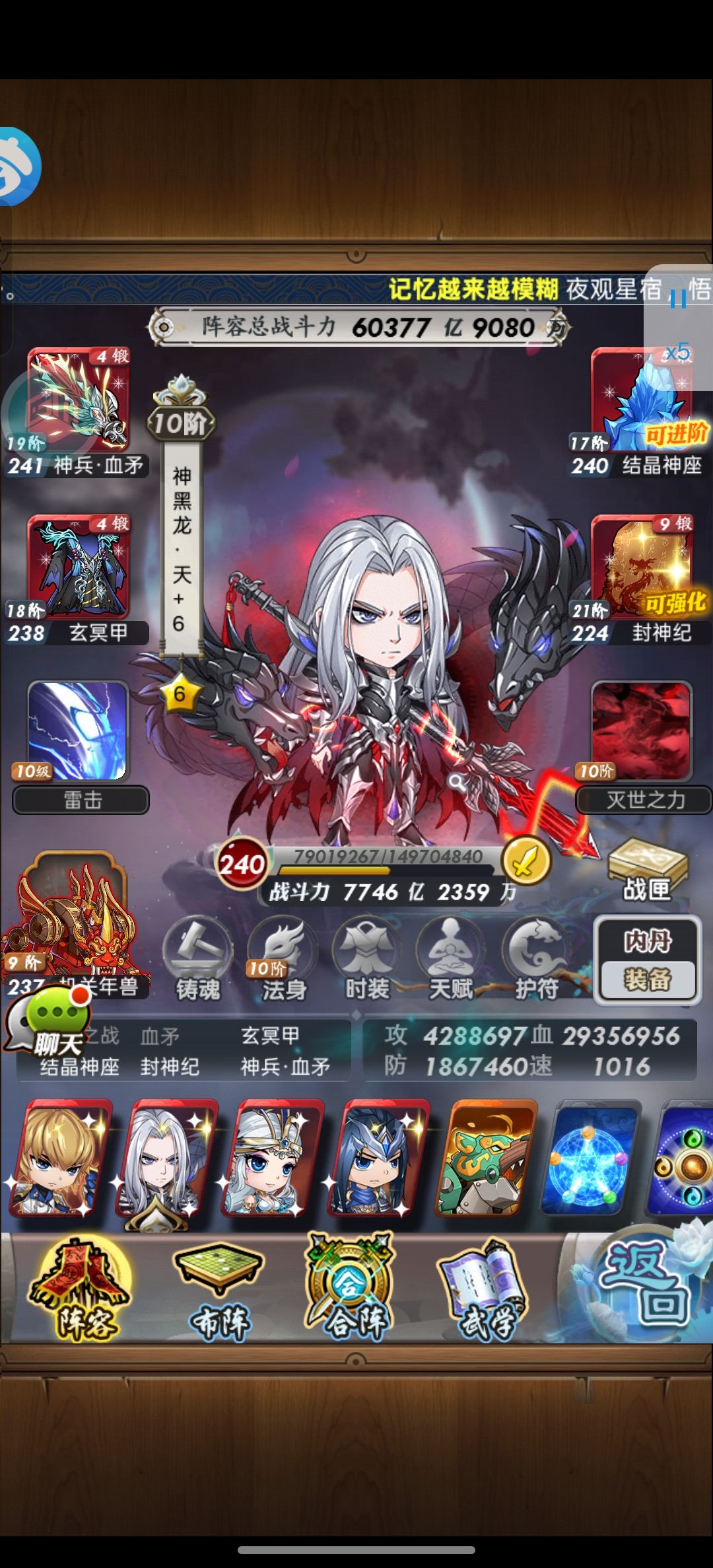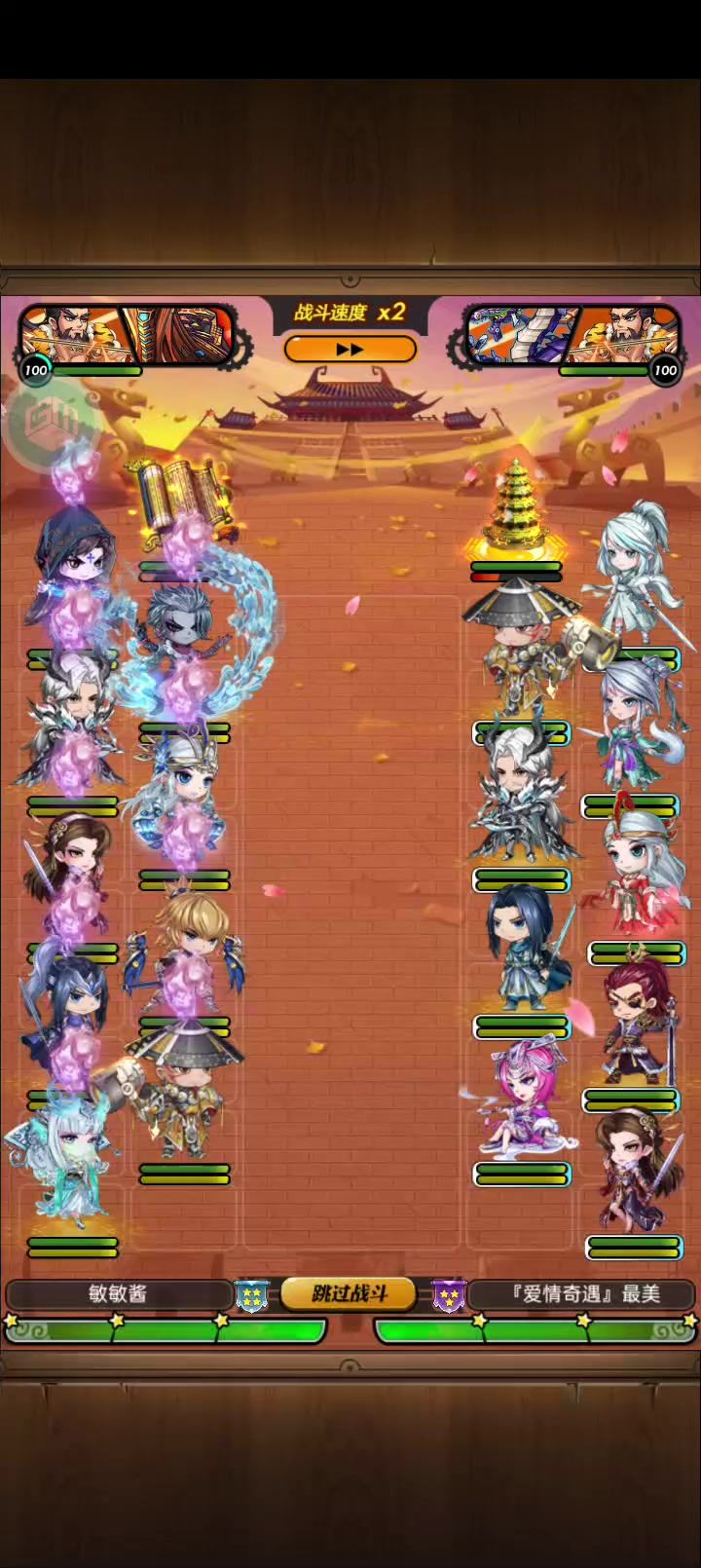 @烦死算了按照这个阵容和机师,可以打出最高伤害阵容的思路讲解出手顺序按扶苏,少司命,嬴政,焰灵姬,魔卫,荆轲,伏念,天宗晓梦,东皇1.扶苏先手,残废对面一半,攻击全体附加对面35%的血量伤害2.少司命二速,对面受到伤害加20%3.焰灵姬三速,对面受伤加20%,技能对面每死一个放一次4.嬴政四速,对面前排全部禁锢,对面血量最高在后排直接秒杀,嬴政加后续所有人35%的额外伤害,秒杀触发