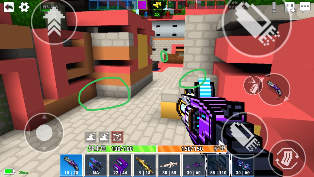 国服编号:959088 开局时,主要有两个地方需要扔雷:一是向对方的平台处扔雷,二是到自家出生点后方的平台处向下水道处扔雷。前者是为了敌方玩家上自家平台,后者是为了防止对方从下水道偷袭。 扔雷完成后,一般可以冲向对方家里偷袭,也可以上自家平台和对方在平台处对枪。 由于地图障碍物不少,大范围空间不多,而小范围空间较多,因此露弹枪可发挥其优势:在守家时,可以拿霰弹枪在图1中绿色圈圈出位置“守株待