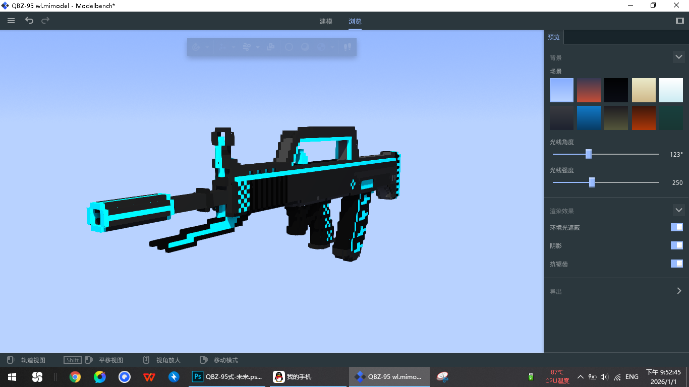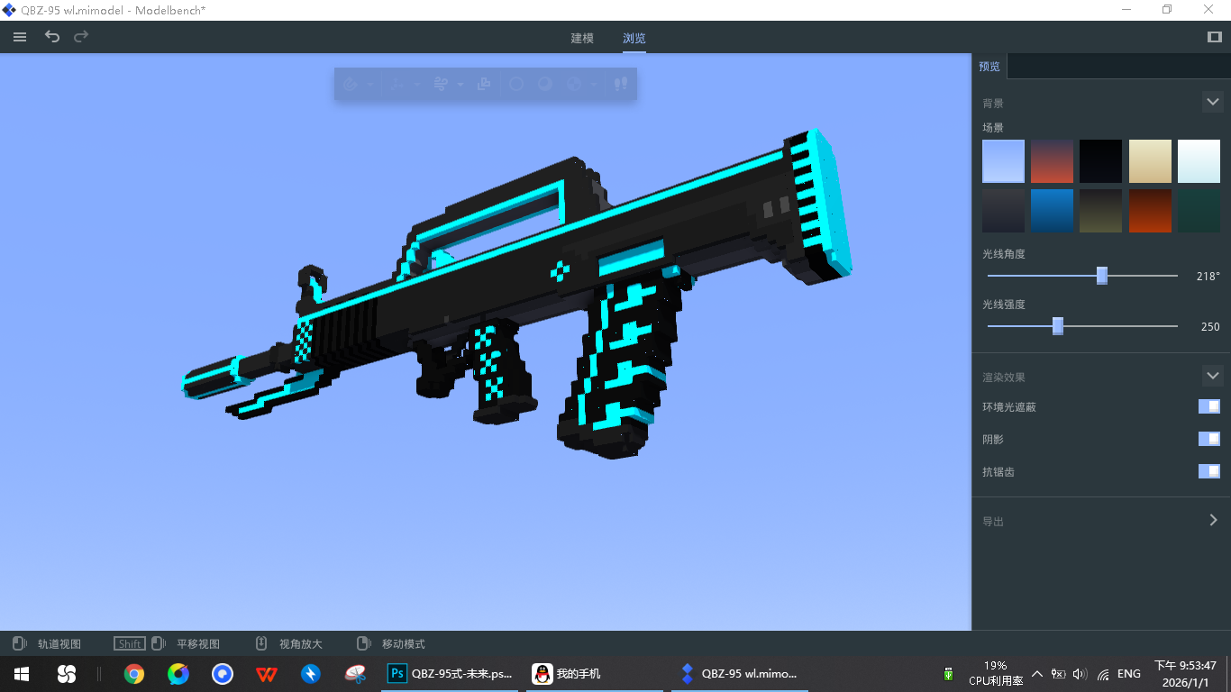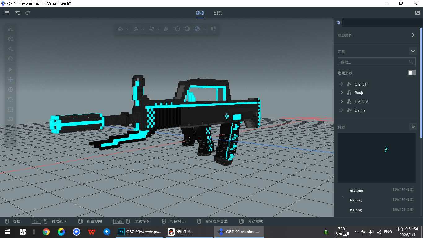 复刻测试时期某玩家制作的自定义武器,之后再把蓝色部分单独搞一个组件作为夜光效果