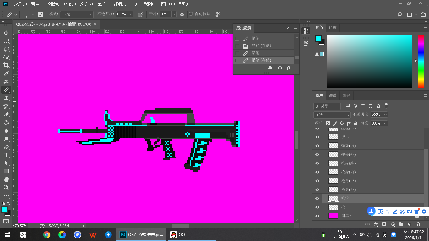 换弹手还是有点生硬 调来调去调不好 懒得细化了[表情_捂脸哭]