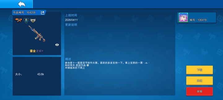 好的作品早就被埋了,看不腻?对事不对人,别对号入座单拼质量图里面好几个根本上不了榜,靠着入选发定制的话去吸引别人给你投票,只会让真正的原创好作者慢慢被埋没我这样说肯定一些入选的人会不愿意,看看早期的比赛,再看看近几年的比赛,真的全是公式。。。图二和图三的这两把是我觉得最起码能排个前三的,我觉得1nf那个变形枪完全可以上榜的我给自己叠个甲,如果你觉得我说的让你不舒服,那你请别看,初衷只是为
