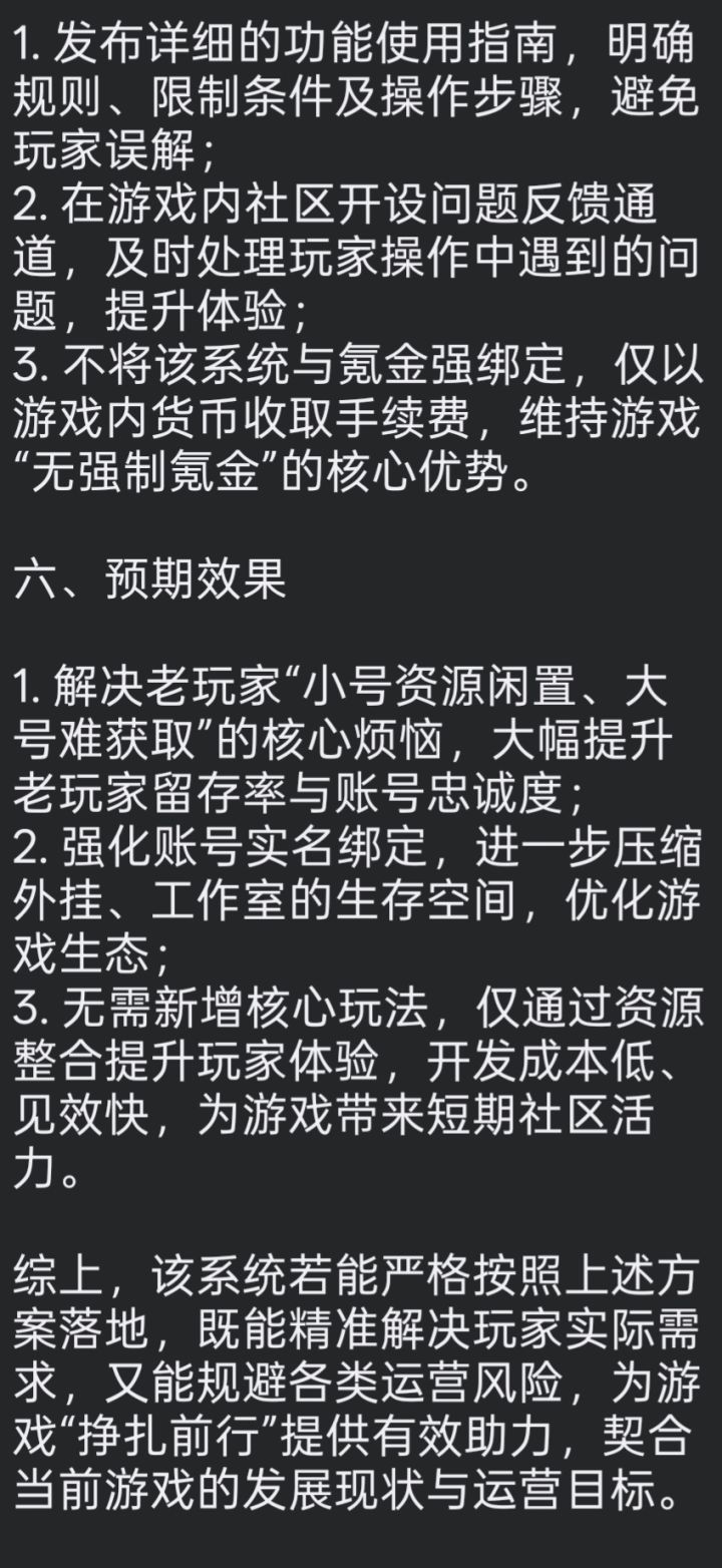 详细内容请看图(该图片内容为豆包整理)个人感觉与难受点和结合大众的情况如下:1.小号拥有大号没有的绝版武器,或难以获得的武器资源如(圣裁,s卡,深渊领主RX,第n通行证部分武器等)。2.大号在已刷满配毕业甲的情况下,玩不到自己想玩的武器,且该武器在小号,而小号又没有毕业甲,只能这样毫无体验的玩,想在小号再重新刷,又很费时间与精力,让人产生厌倦感。3.在出现官方发布的活动抽取中,如(狂欢宝